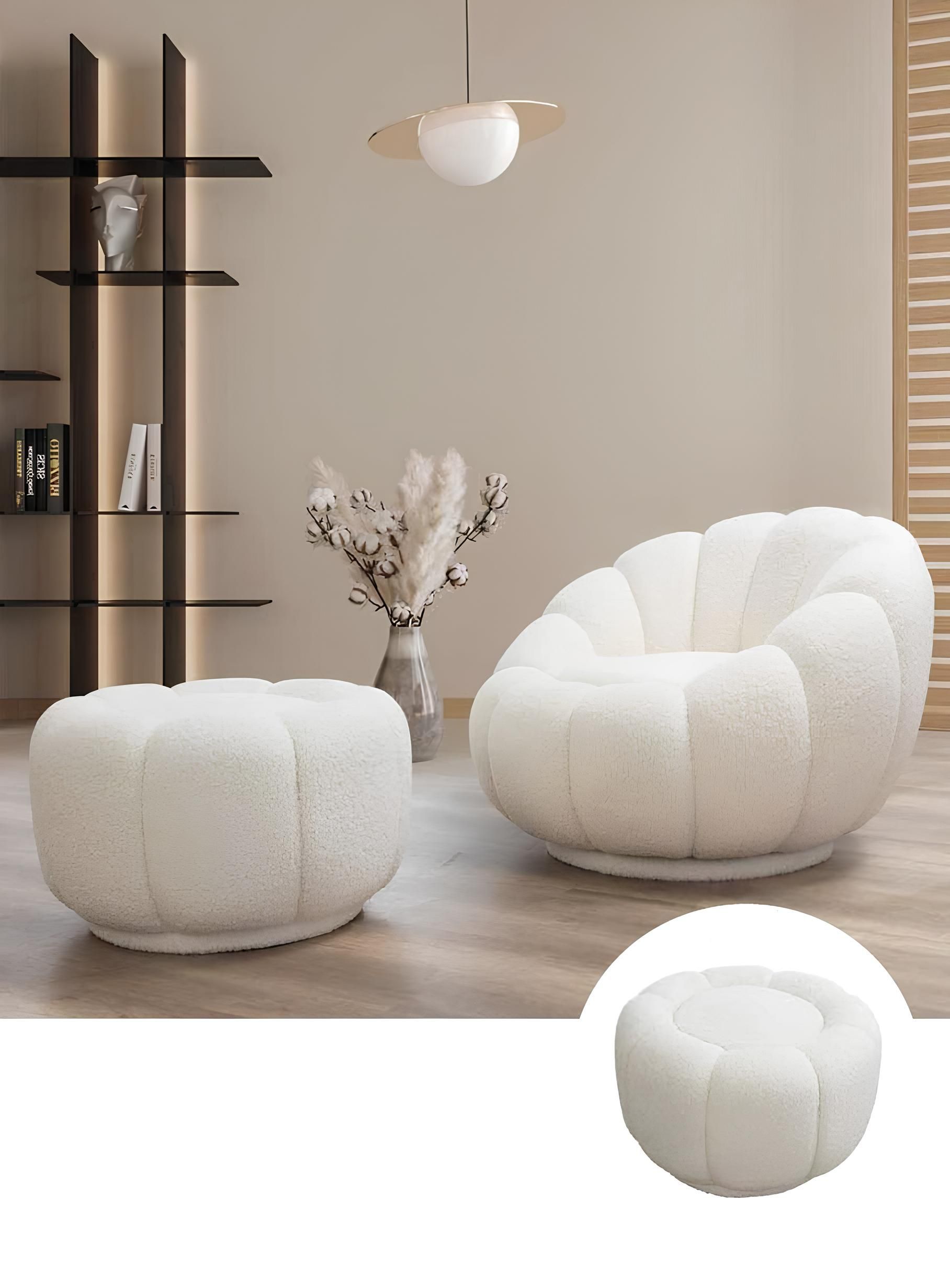 Sessel + Hocker JV Möbel für Wohnzimmer Runder Fernseh Stuhl mit Hocker