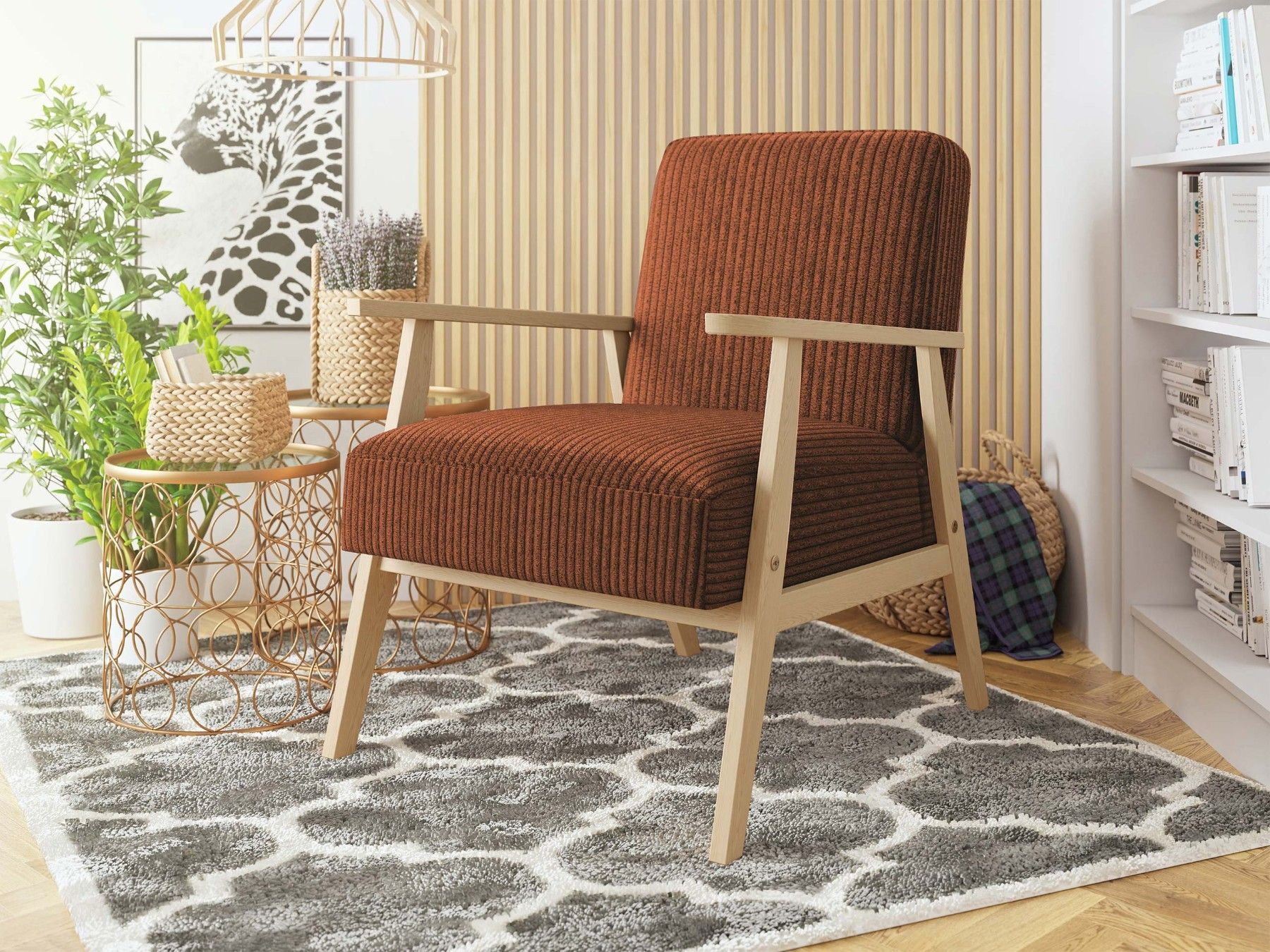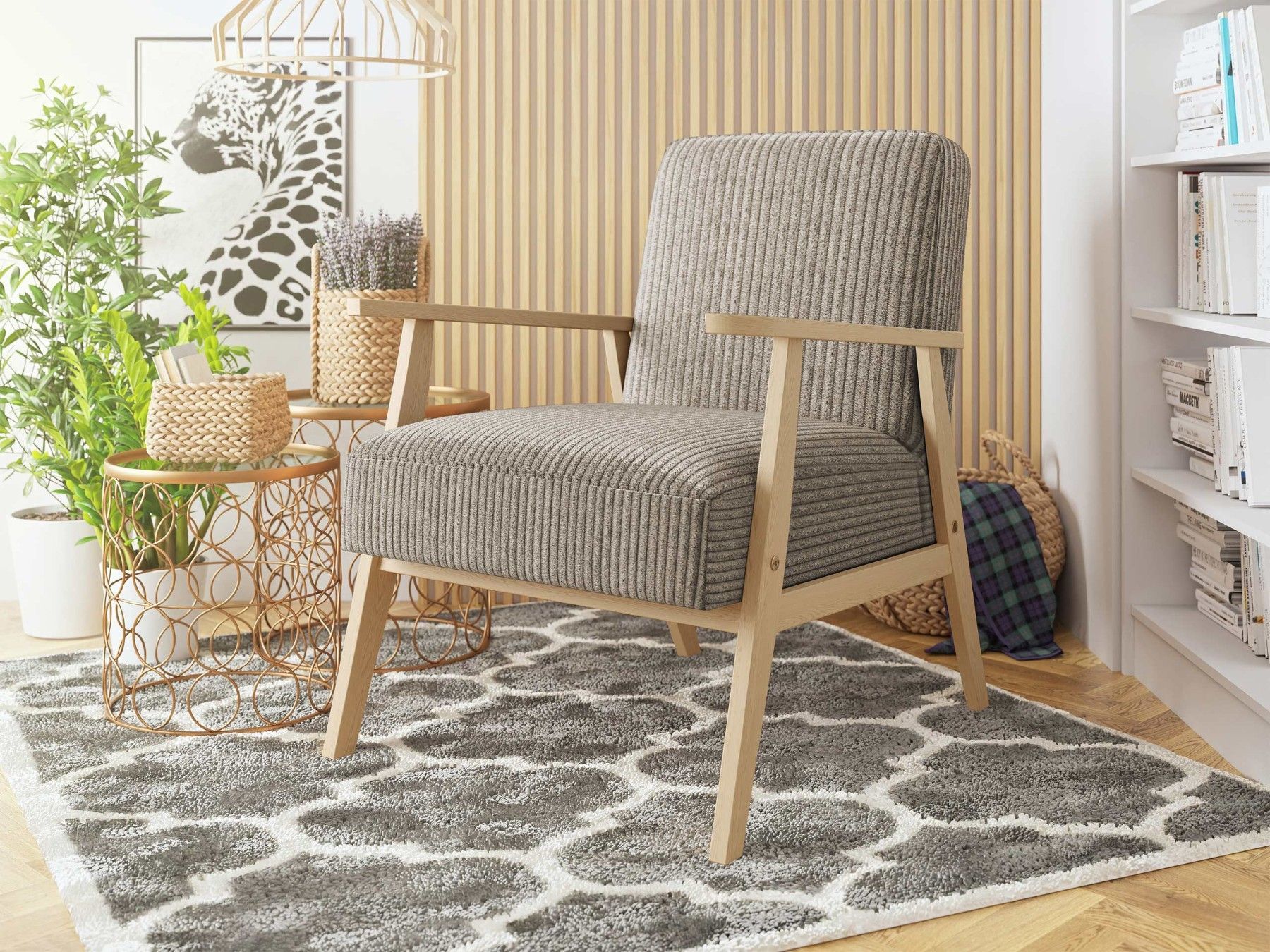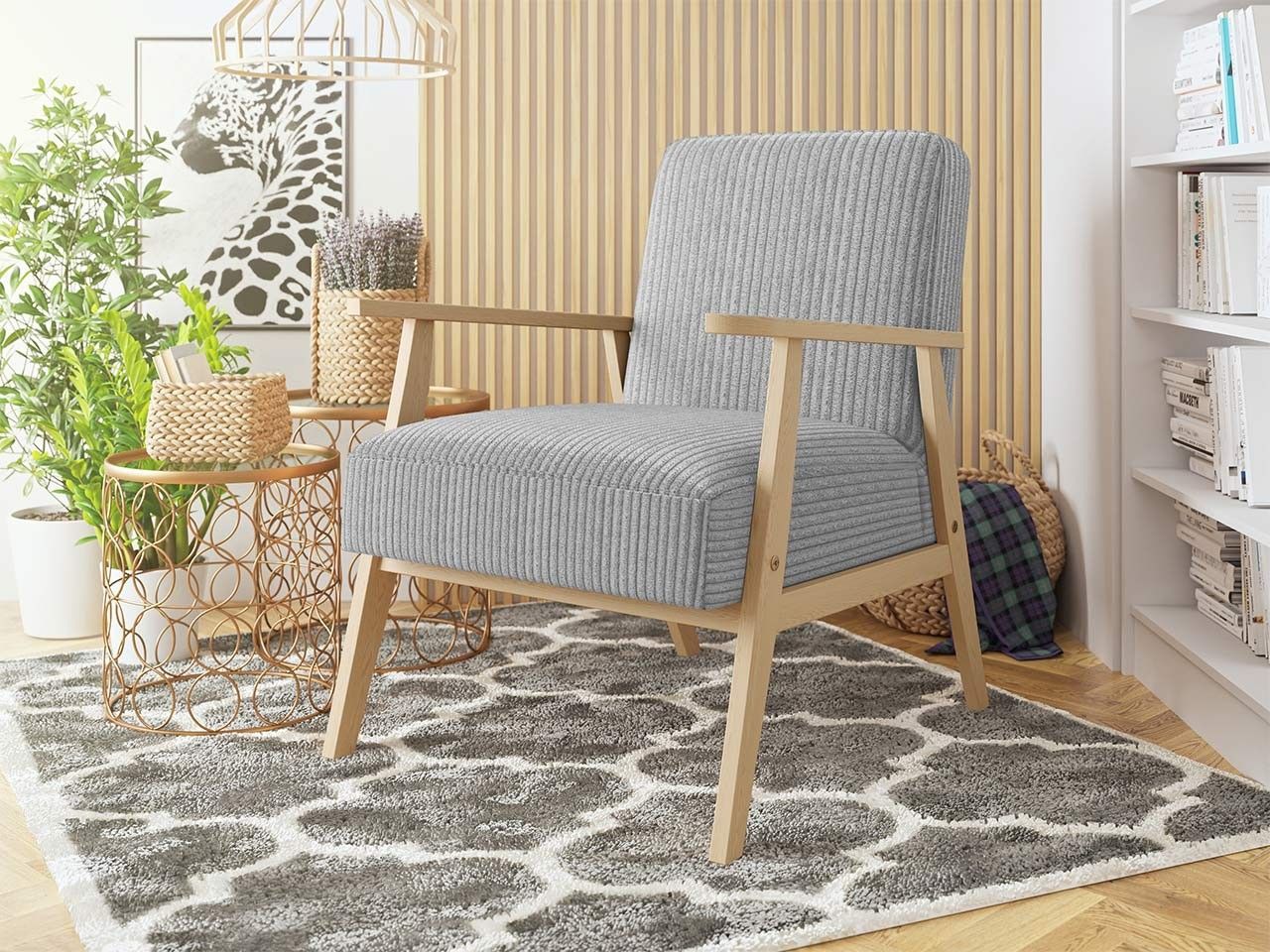 Sessel Kenozi Cord Relaxsessel Holz Lehnstuhl Esszimmer Polstersessel Vintage M24