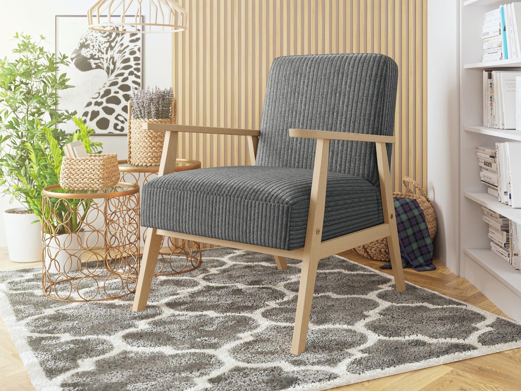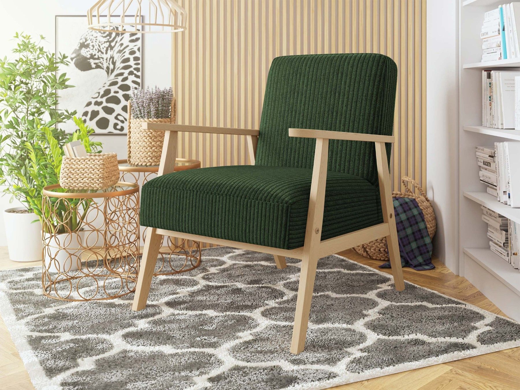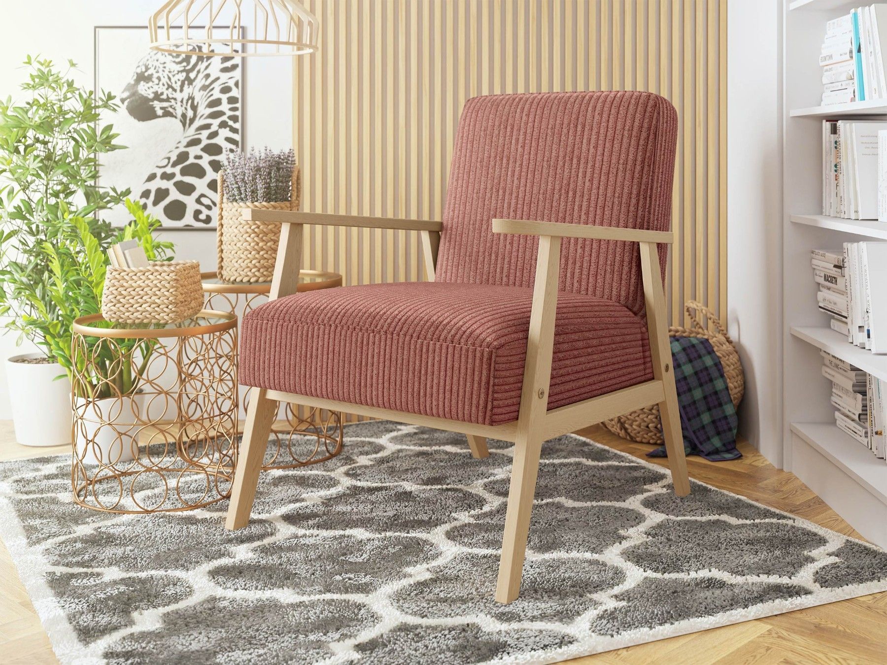 Sessel Kenozi Cord Relaxsessel Holz Lehnstuhl Esszimmer Polstersessel Vintage M24