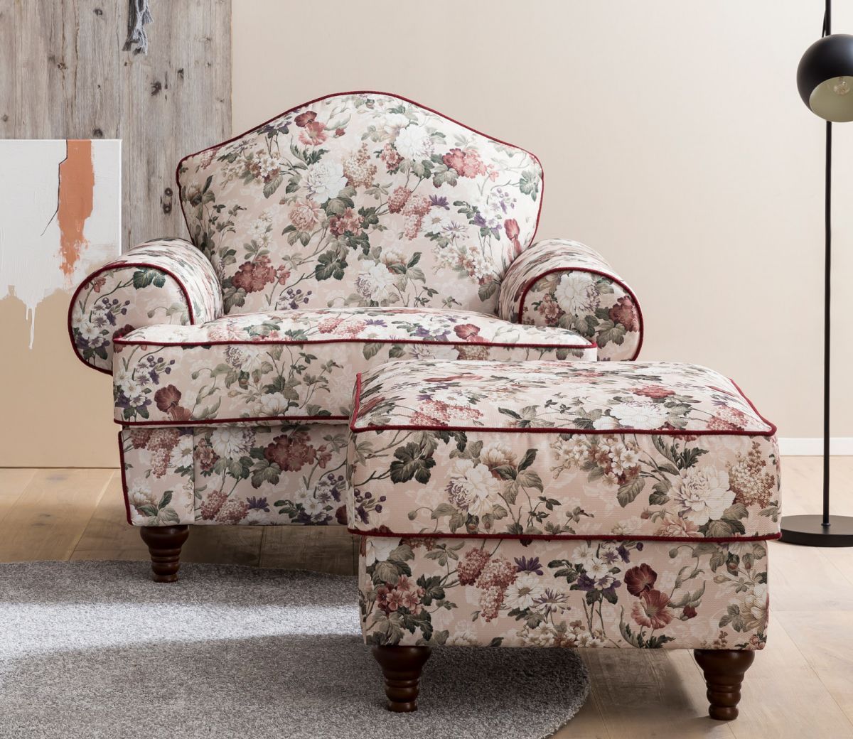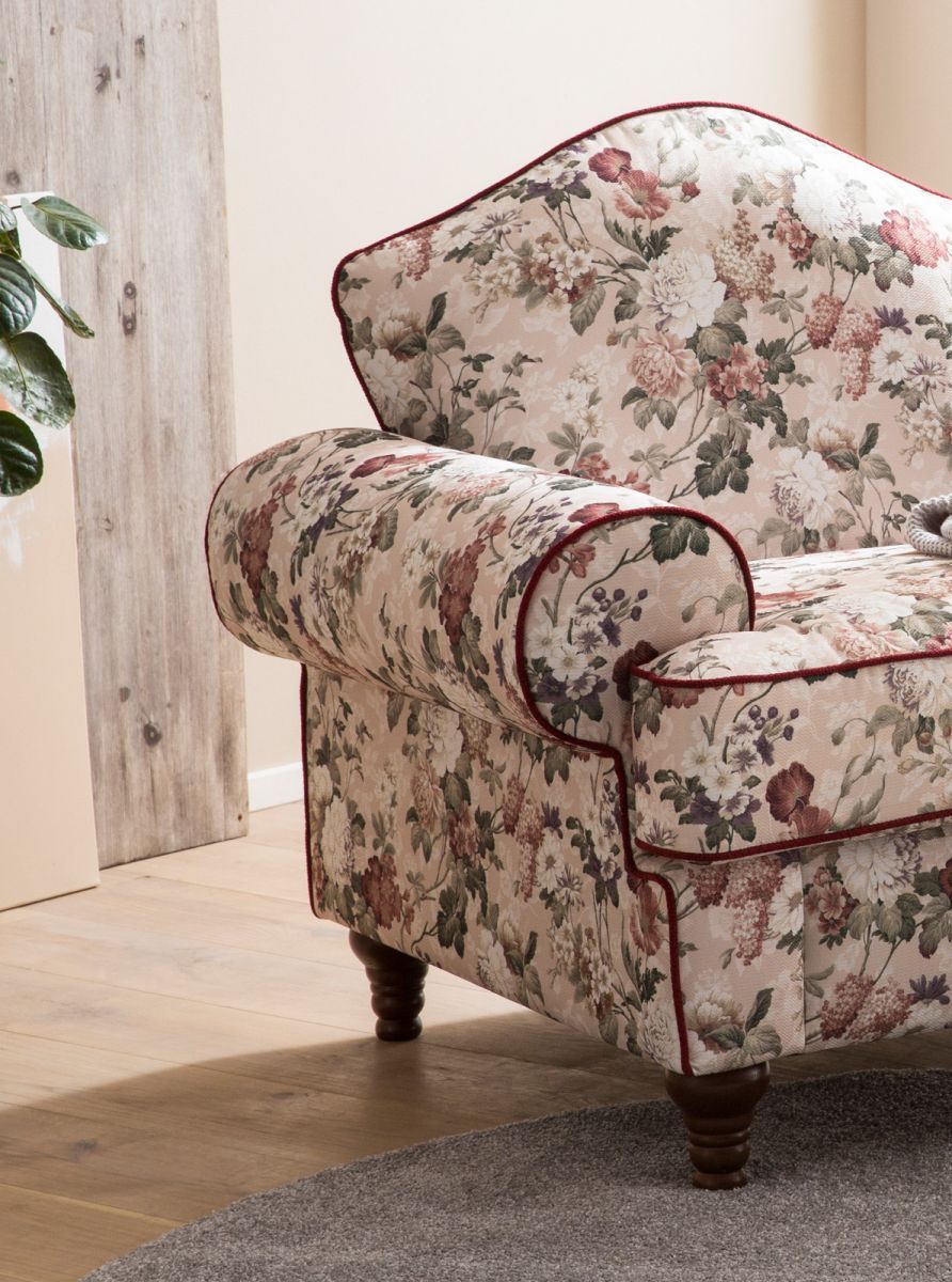 Sessel Set Landhaus Loungesessel inklusive Hocker Polstersessel Blumen Design Elita