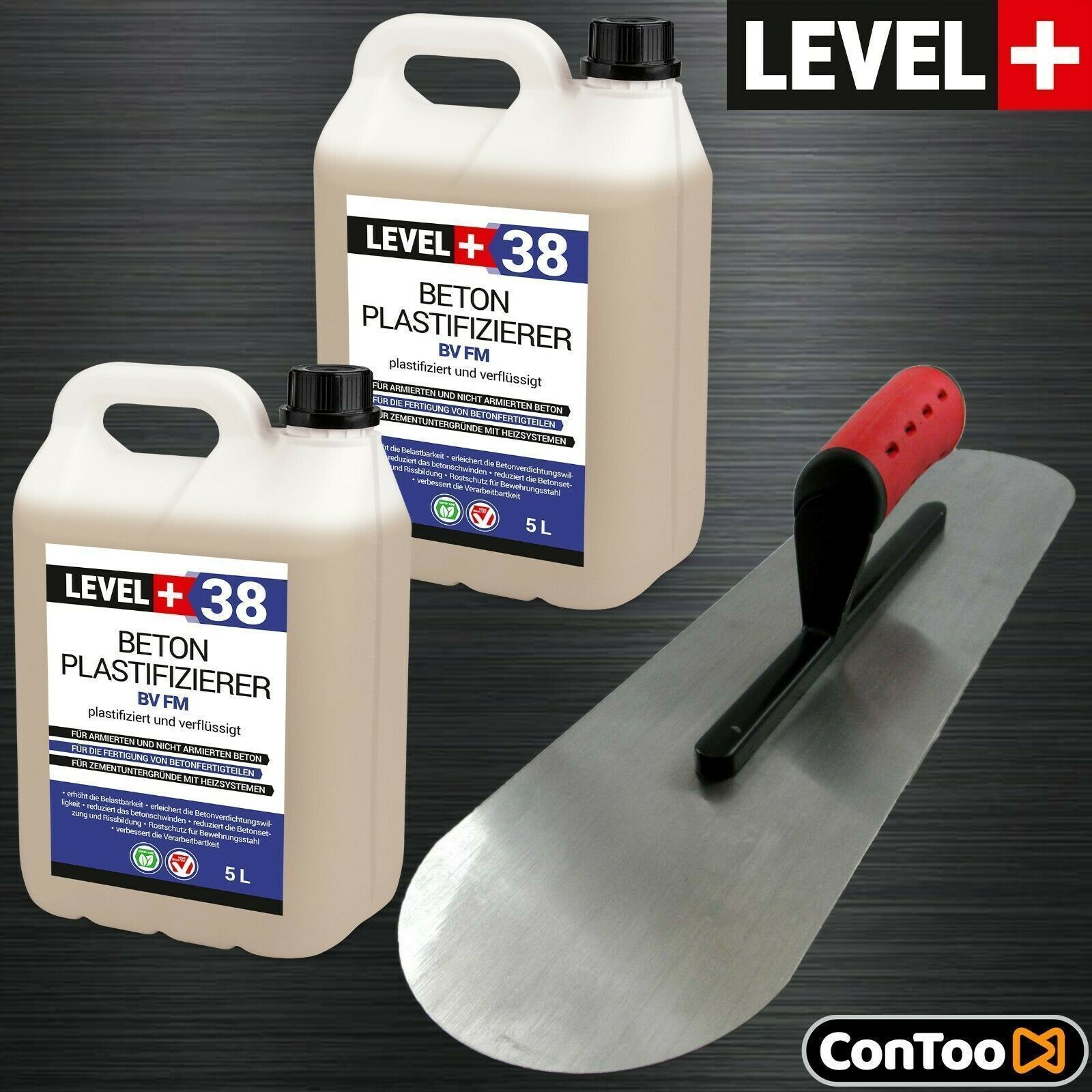 Set 10L Betonverflüssiger Profi Bodenlegerkelle Zweiseitig Halbrund TOP SET351