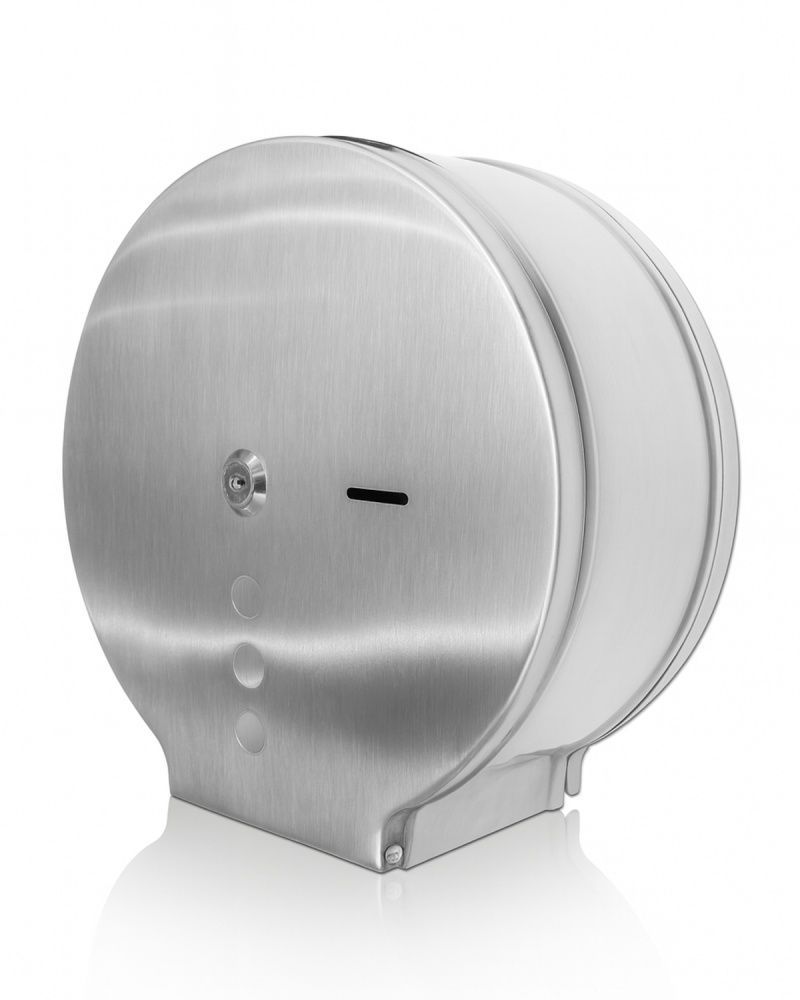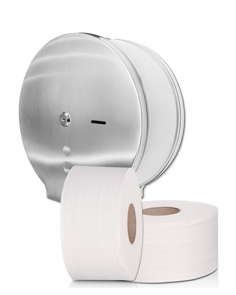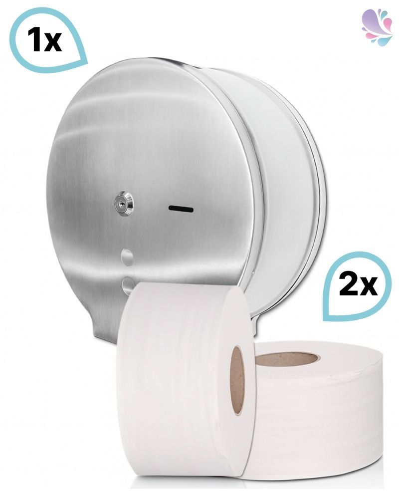 SET: 1x Jumbo-Toilettenpapierspender Edelstahl matt + 2 Jumborollen-Toilettenpapier 3