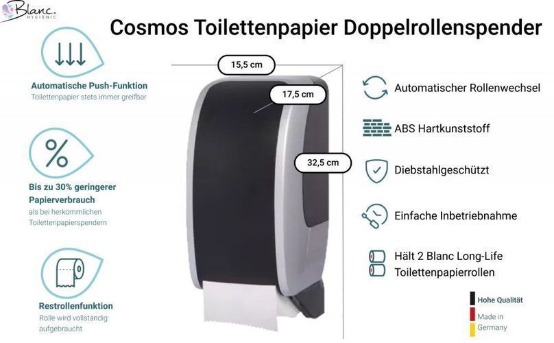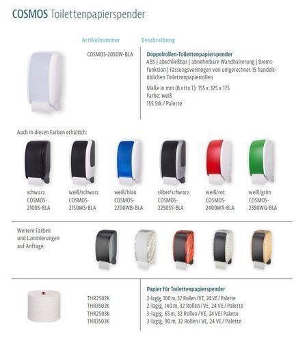 SET: 1x Toilettenpapierspender Doppelrollen Blanc Cosmos verschied. Farben + 4 Toilet