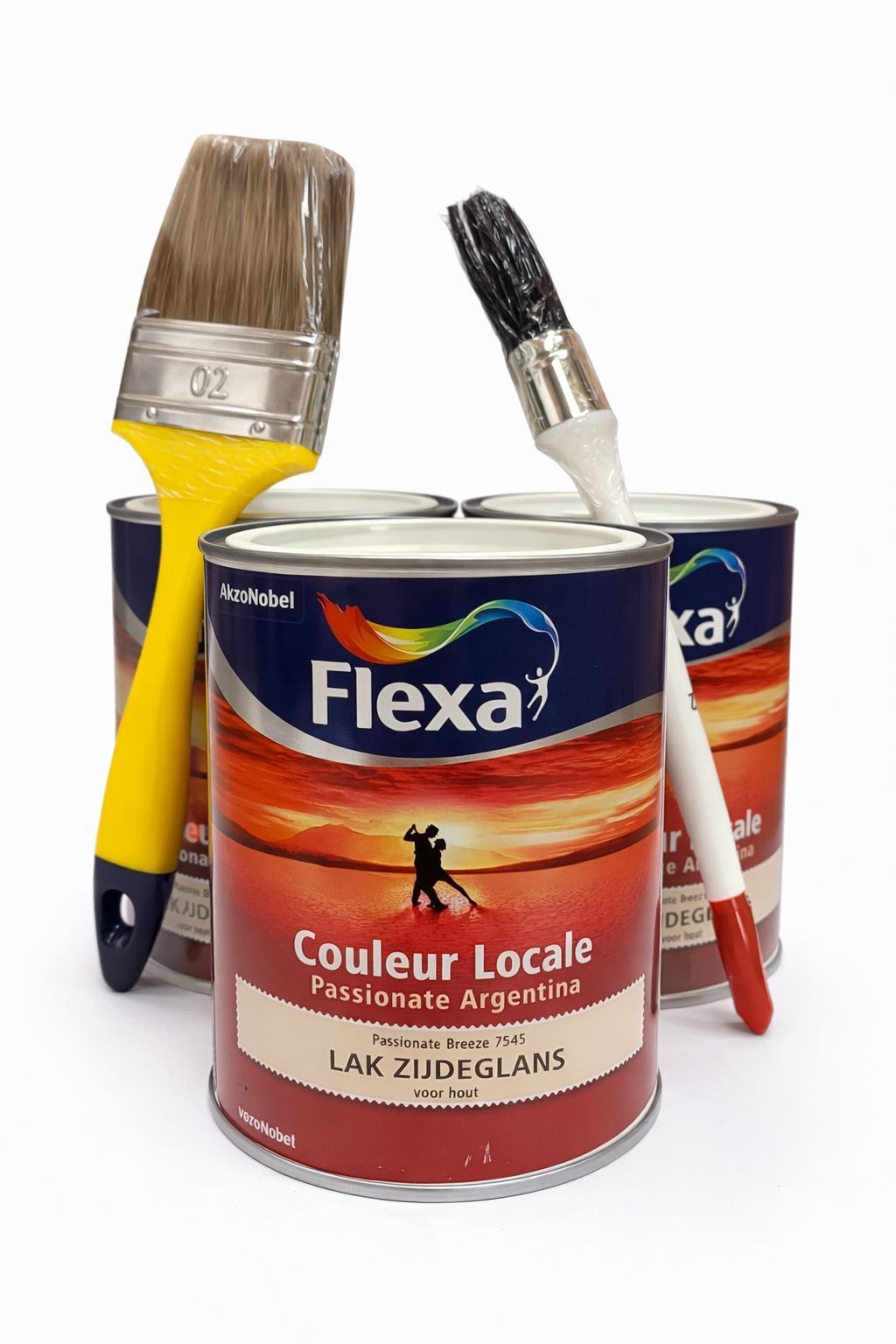 SET 3x Flexa Couleur Locale Lack Seidenglanz Passionate Argentina 7545 mit 2 Pinseln für Holz & glatte Oberflächen