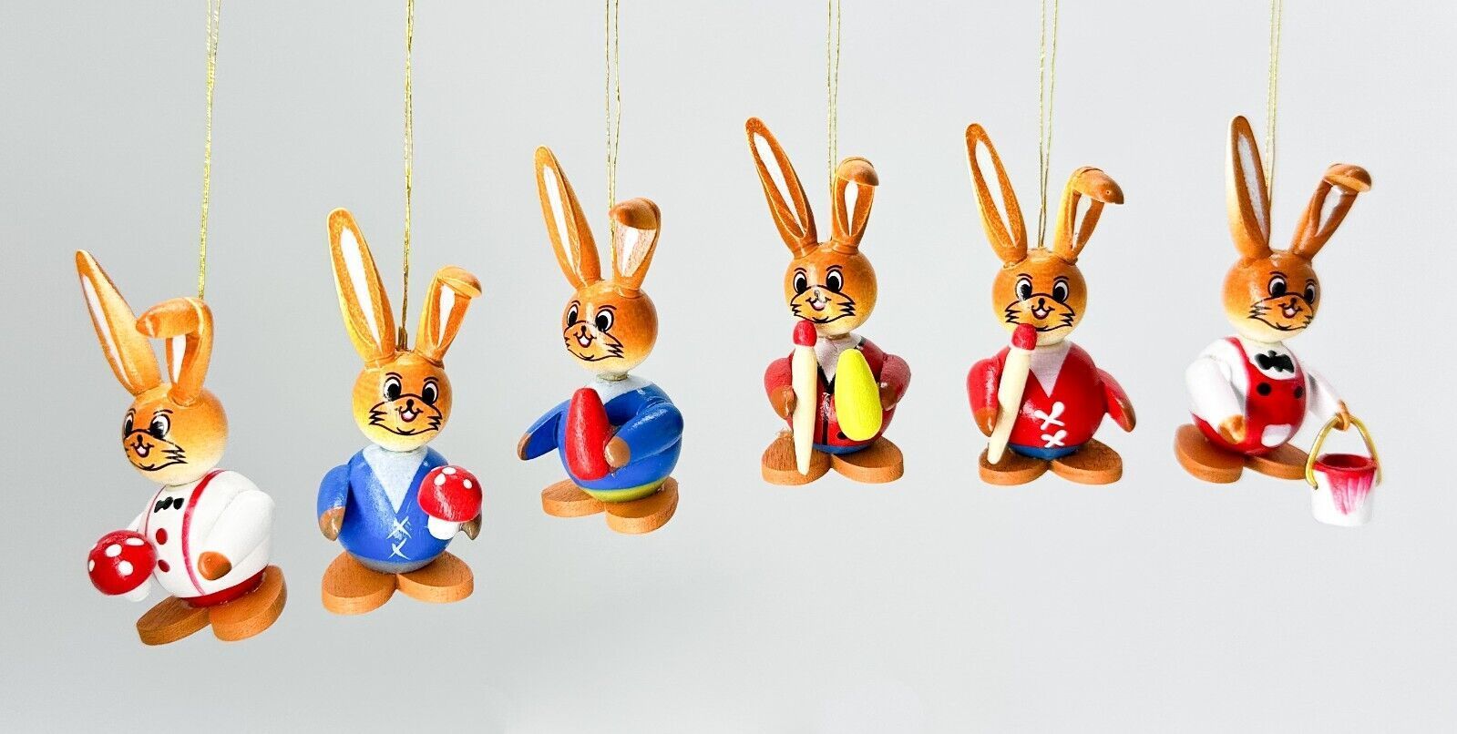 SET 6 Hasen (Kugelhasen) Baumschmuck Osterdeko Anhänger Holz Ostern