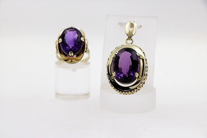 Set aus Ring und Anhänger aus 585er Gelbgold mit Amethyst