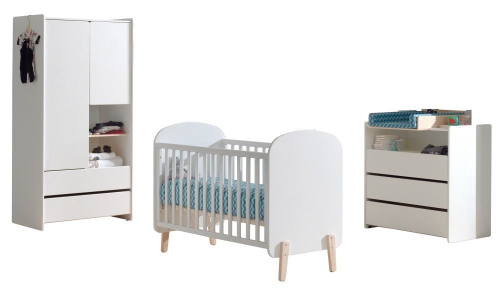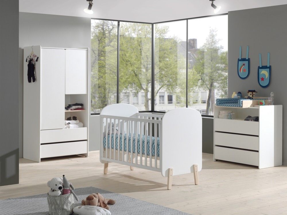 VIPACK Set Babyzimmer Babybett Kommode Wickelaufsatz Kleiderschrank 60x120 Möbel Weiss