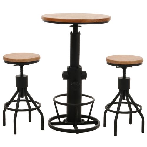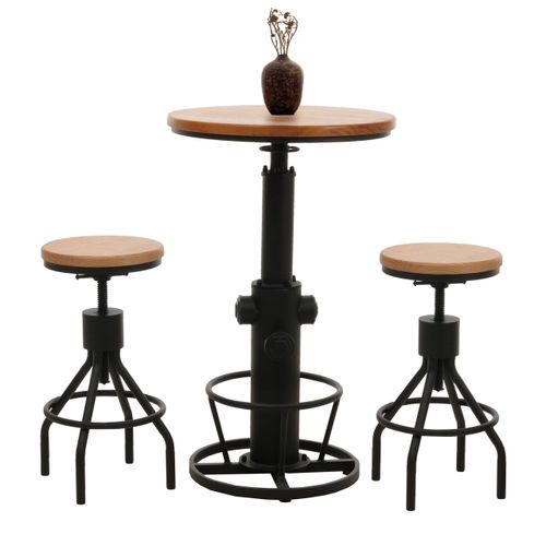 Mendler Set Bartisch + 2x Barhocker HWC-N17, höhenverstellbar drehbar Fußablage Industrial