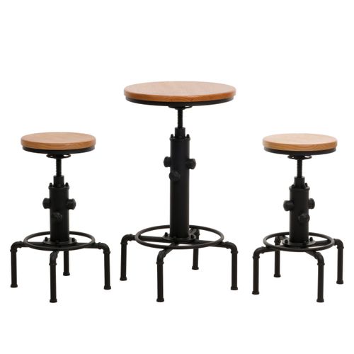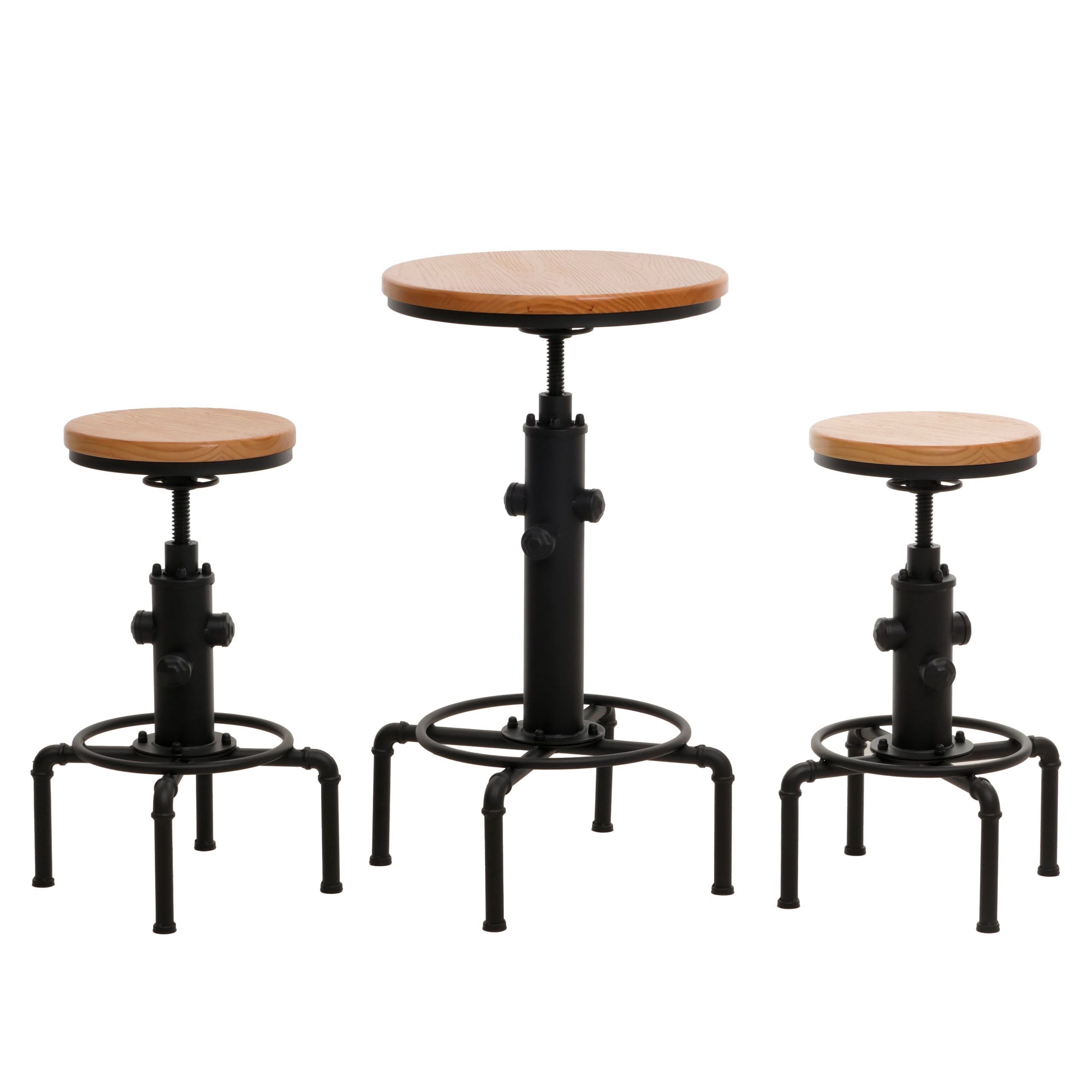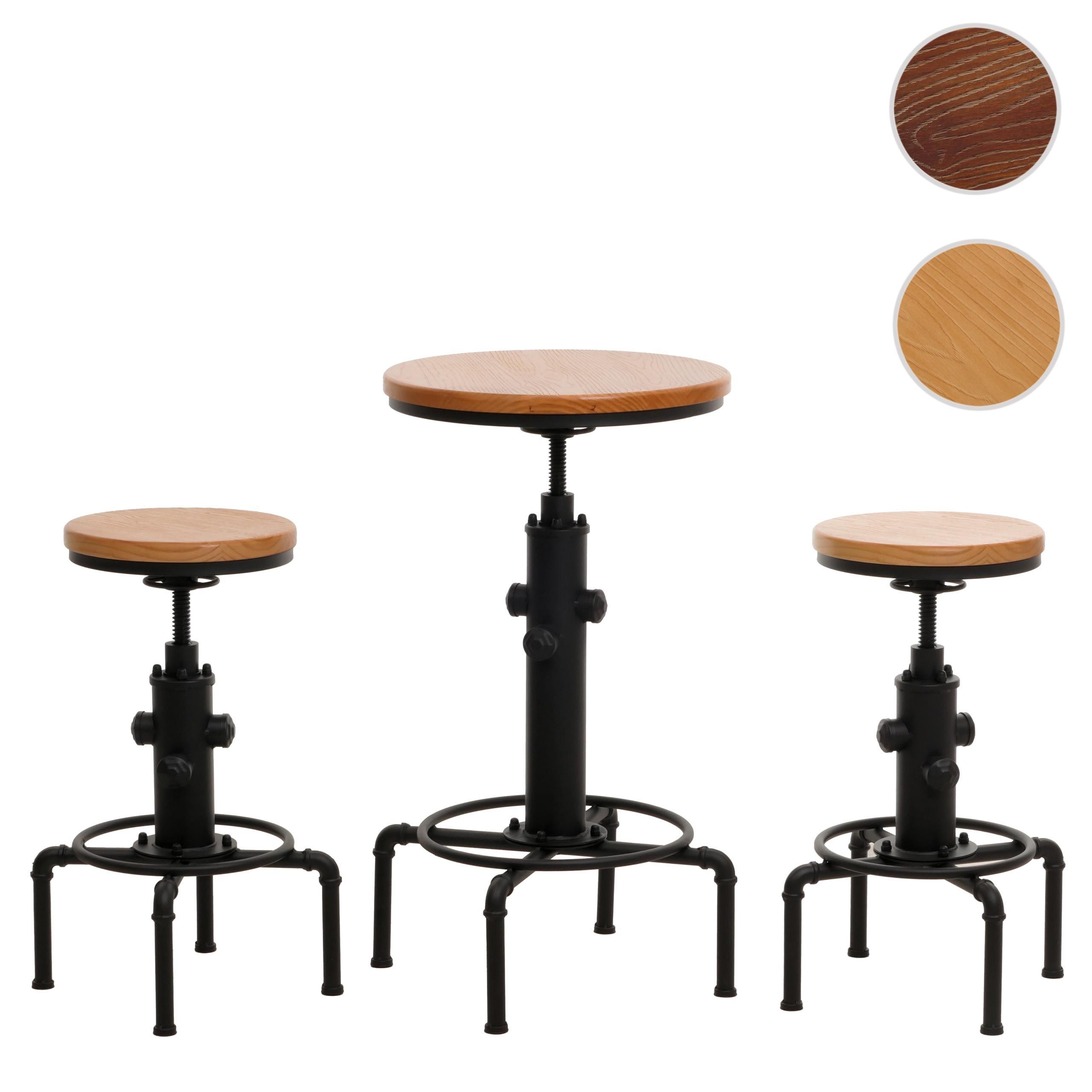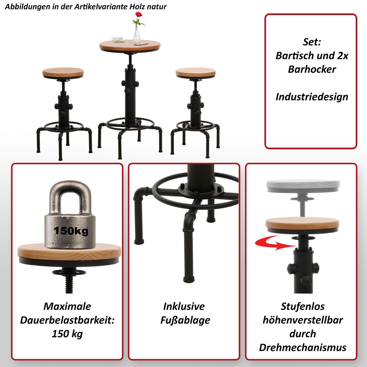 Mendler Set Bartisch + 2x Barhocker HWC-N23, höhenverstellbar drehbar Fußablage Industrial