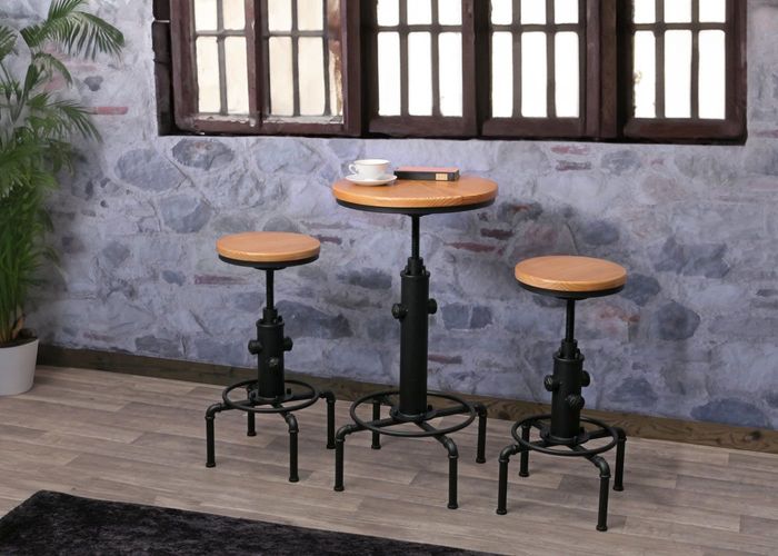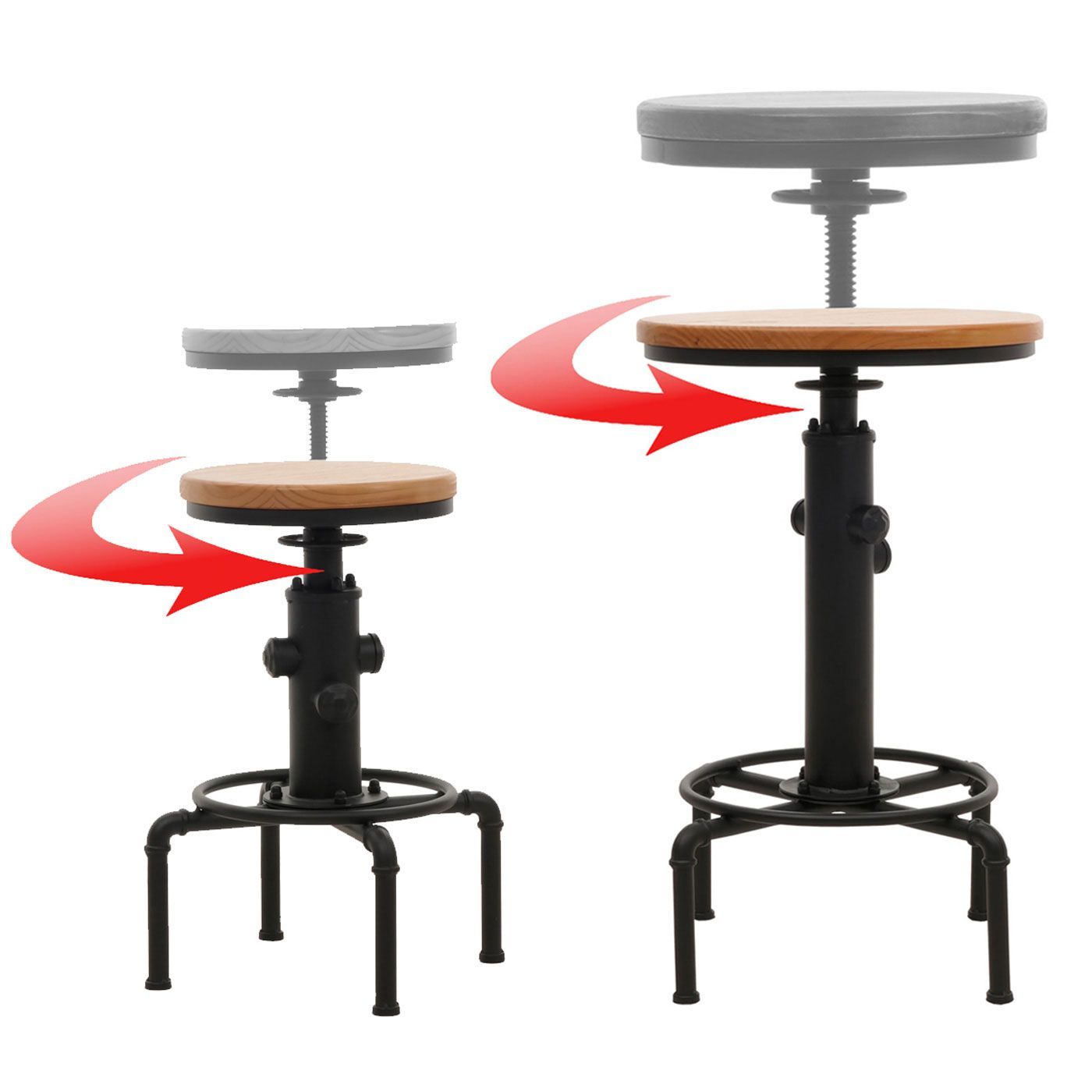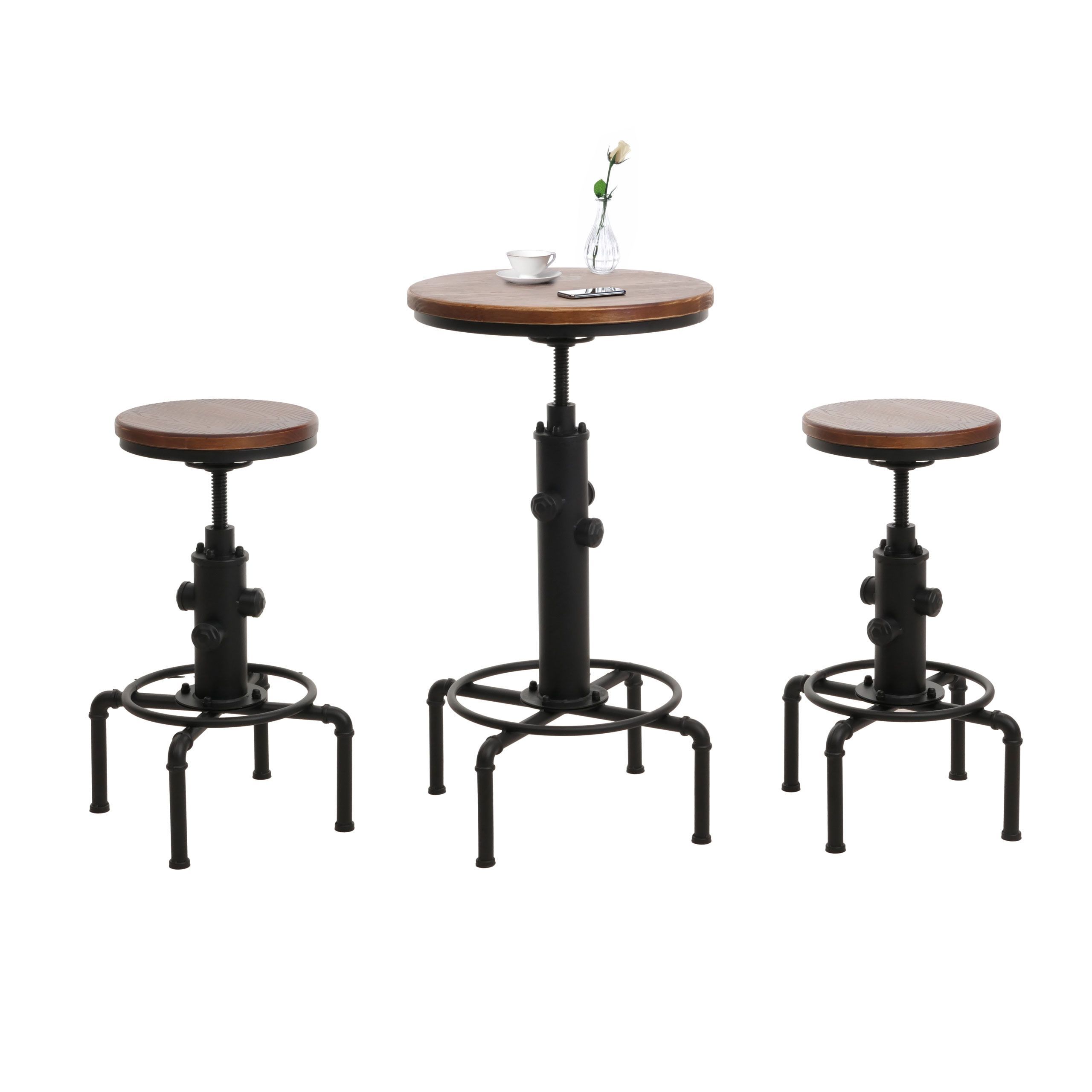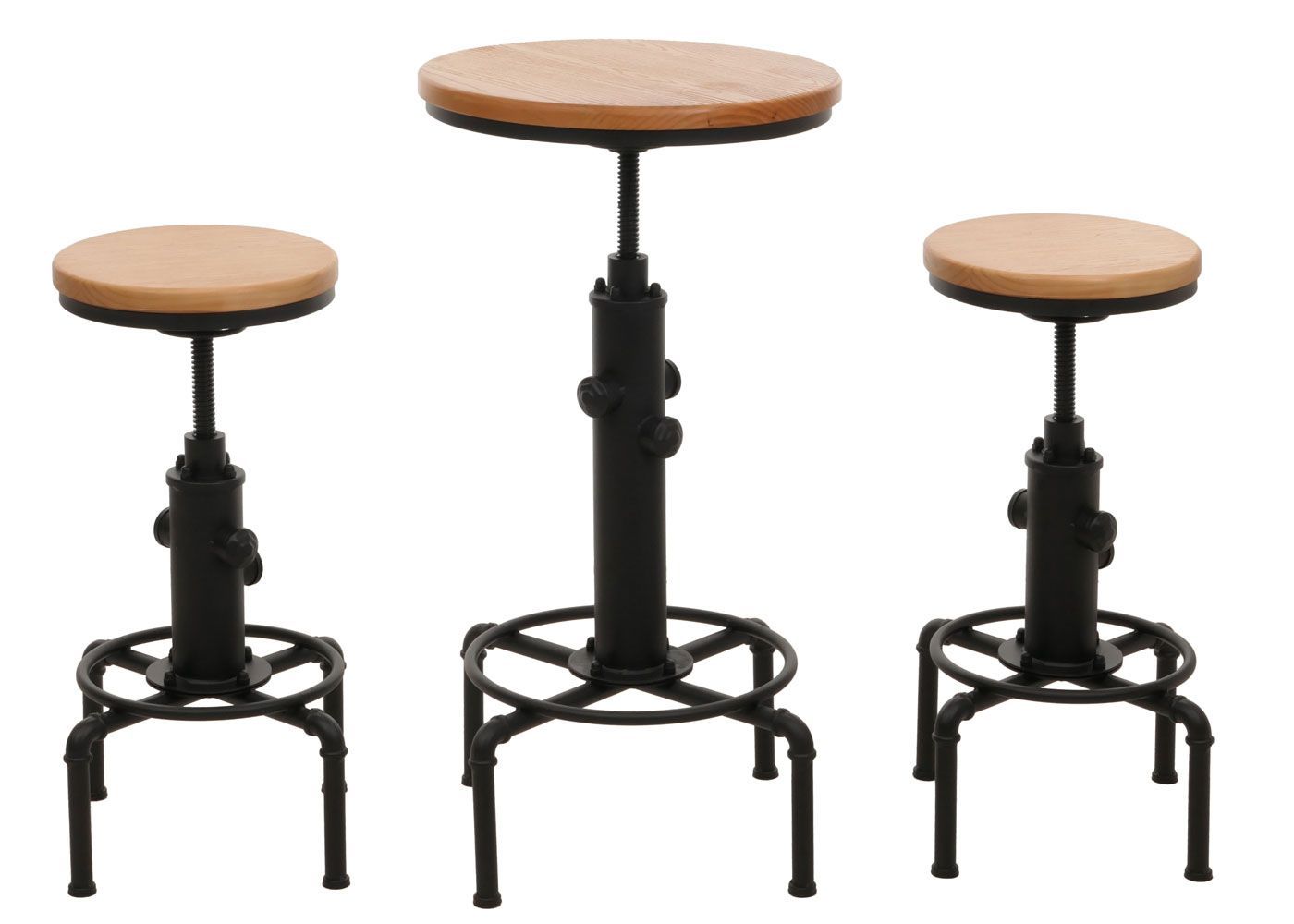 Mendler Set Bartisch + 2x Barhocker HWC-N23, höhenverstellbar drehbar Fußablage Industrial