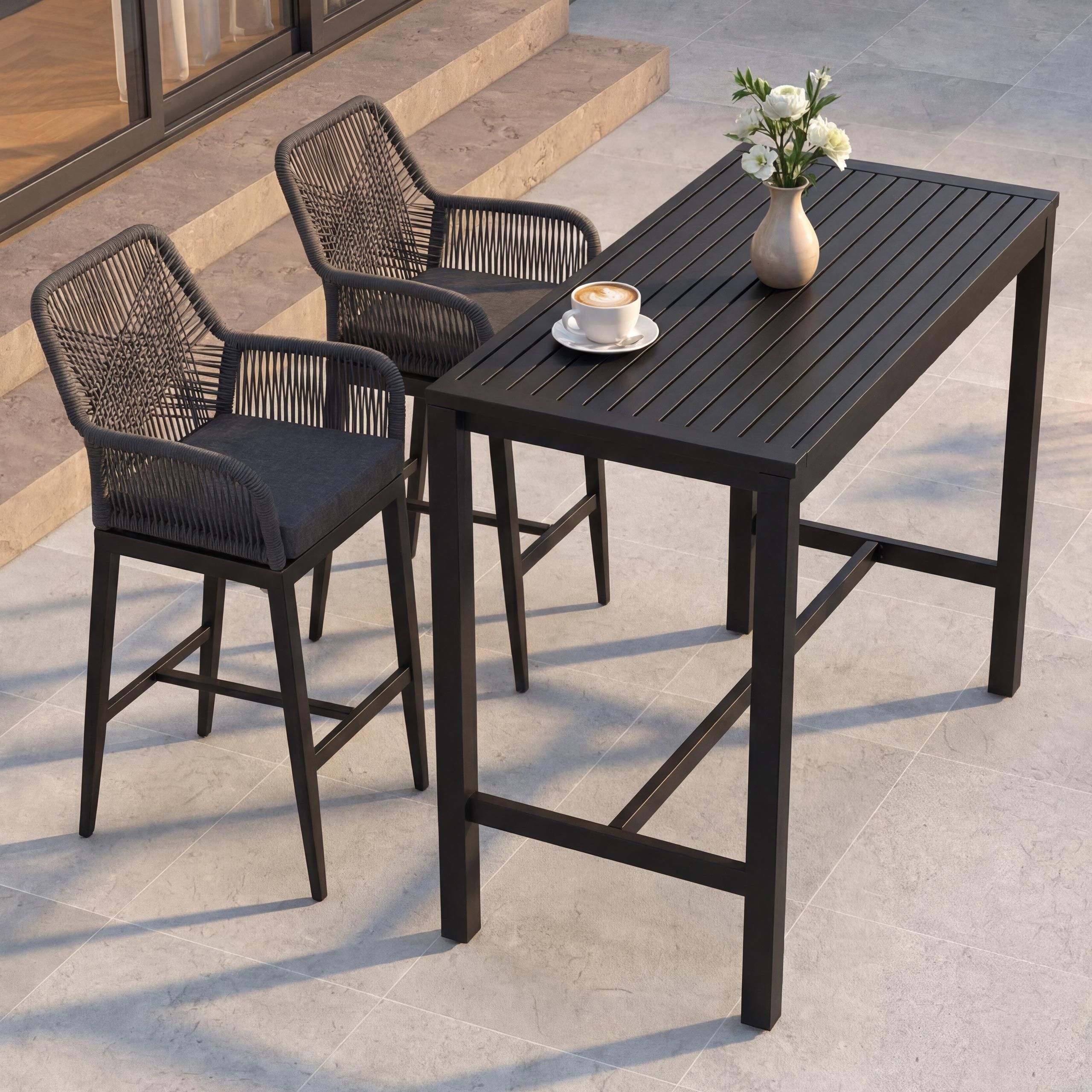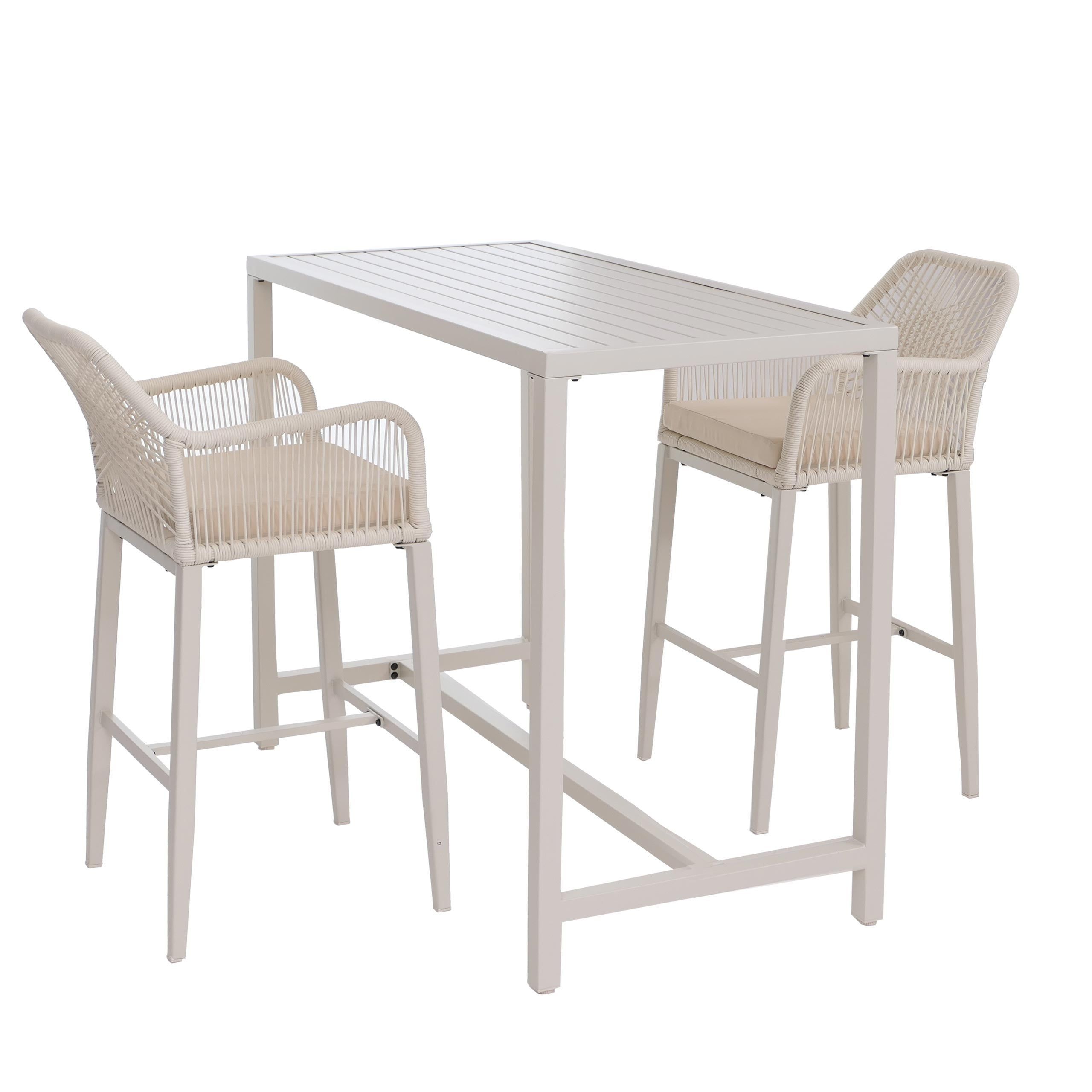 Mendler Set Bartisch + 2x Barhocker HWC-P91, Outdoor Sitzpolster Seilgeflecht Metall