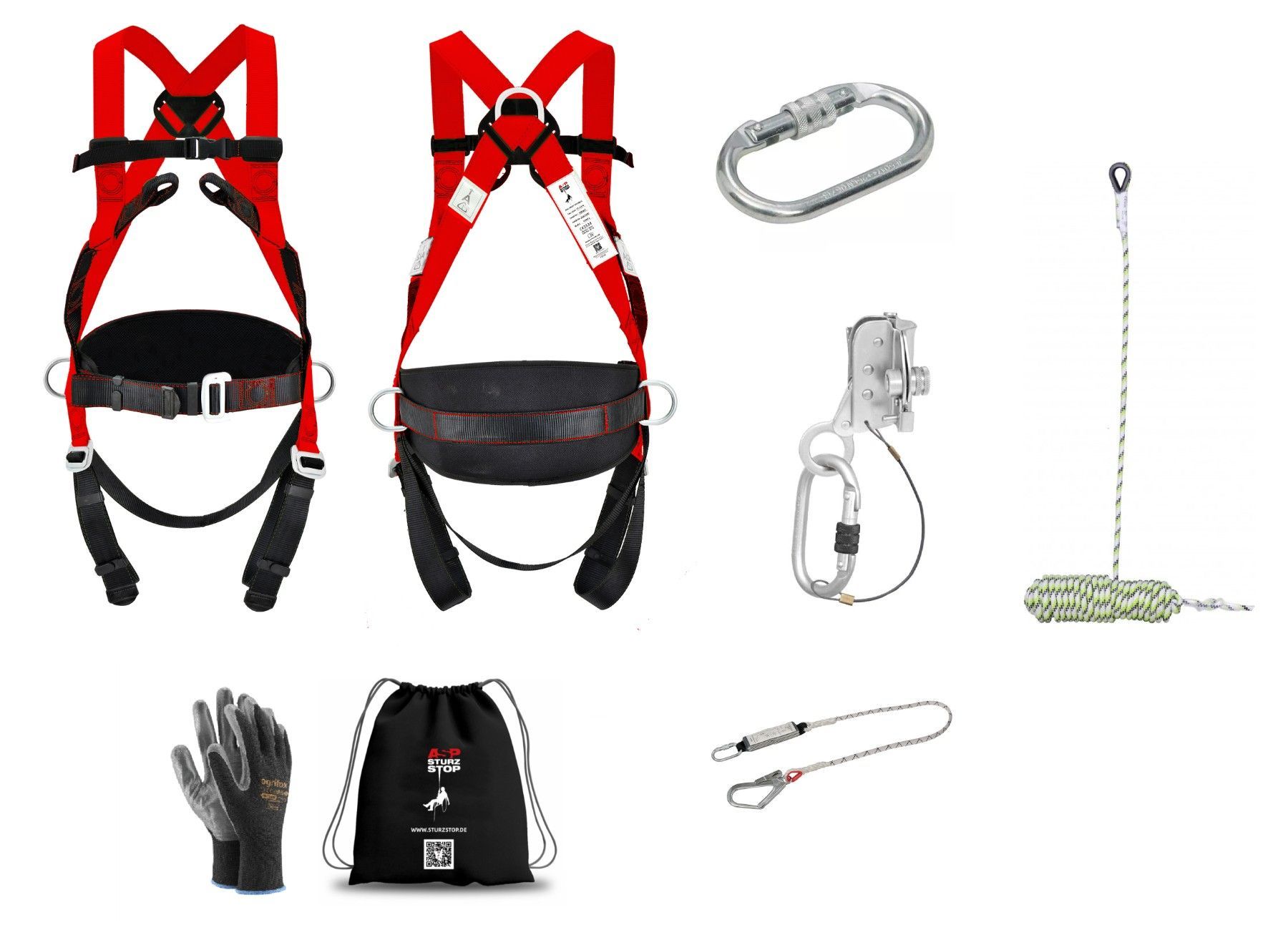 Set Baumpflege Dach Sicherheitsgurt Auffanggurt inkl Seil 10m Seilbremse Falldämpfer