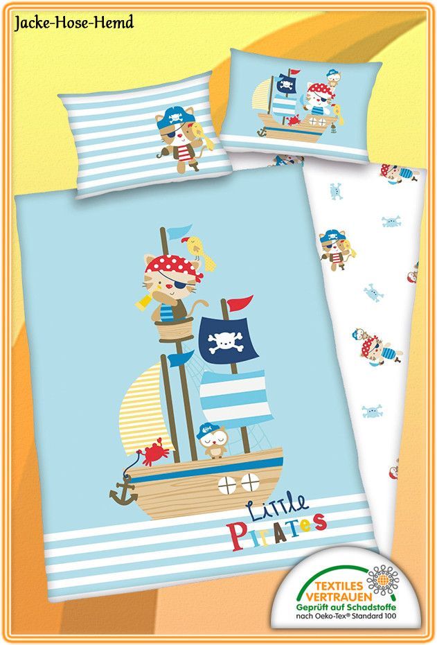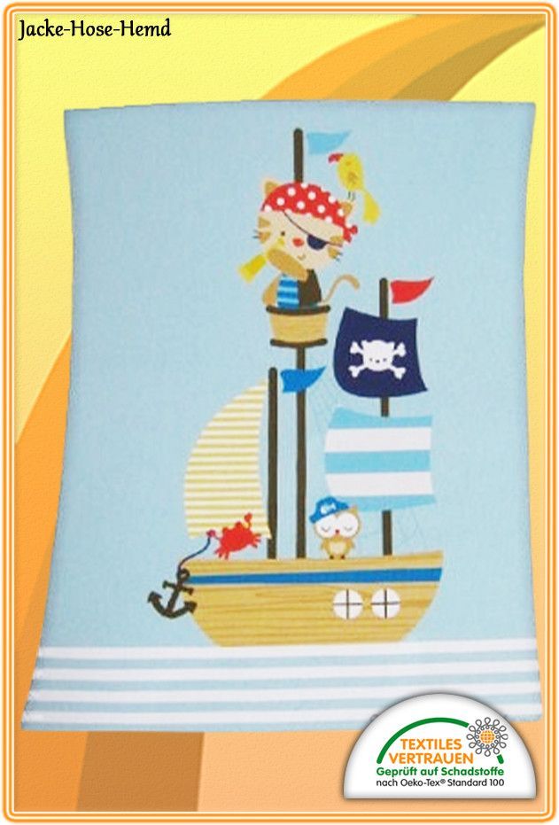Herding Set besteht aus Babybettwäsche und Babydecke Motiv: Katze Pirat - NEU auch einzeln