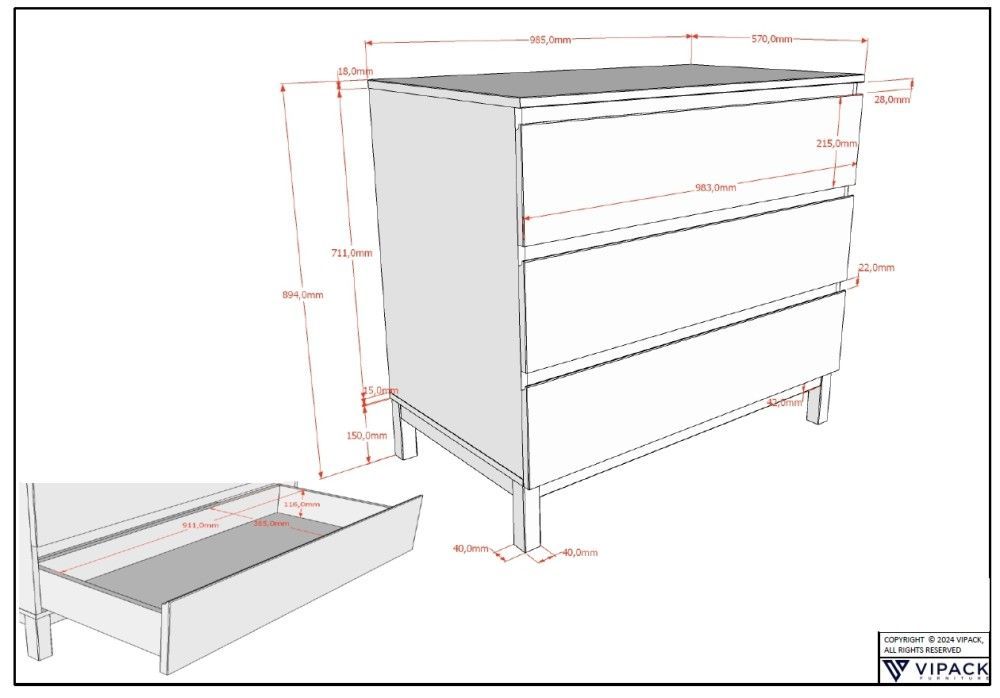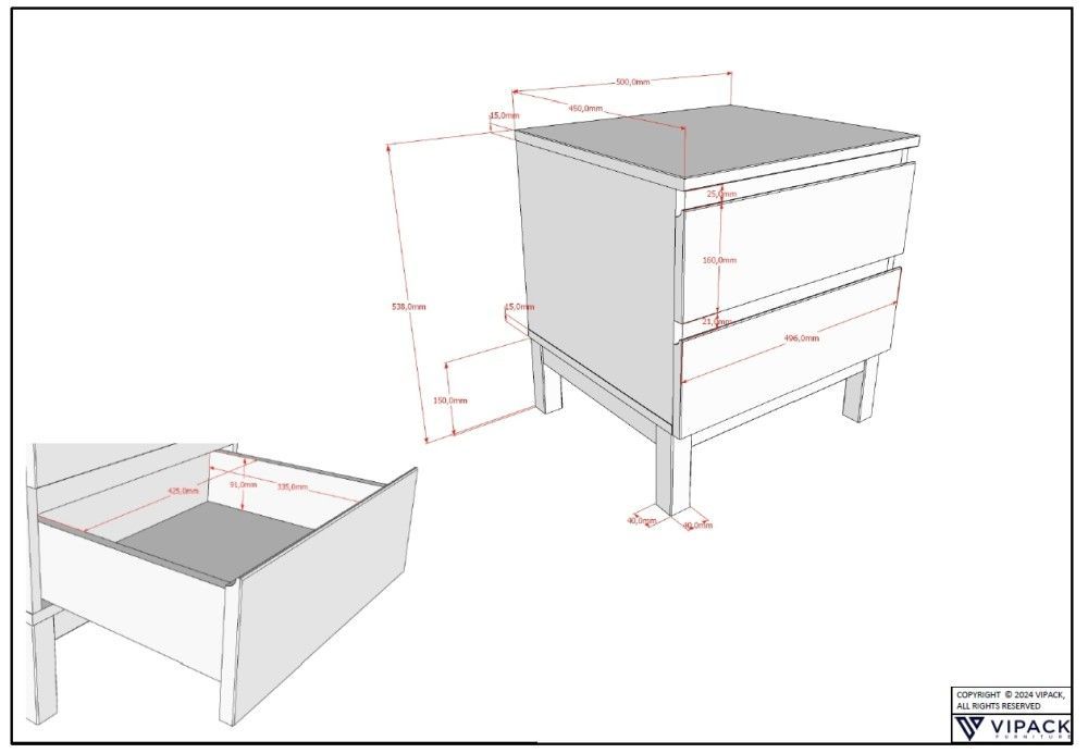 VIPACK Set Bett 90x200 Nachtkommode Schrank 2T Kommode Jugendzimmer Kinderzimmer Weiß