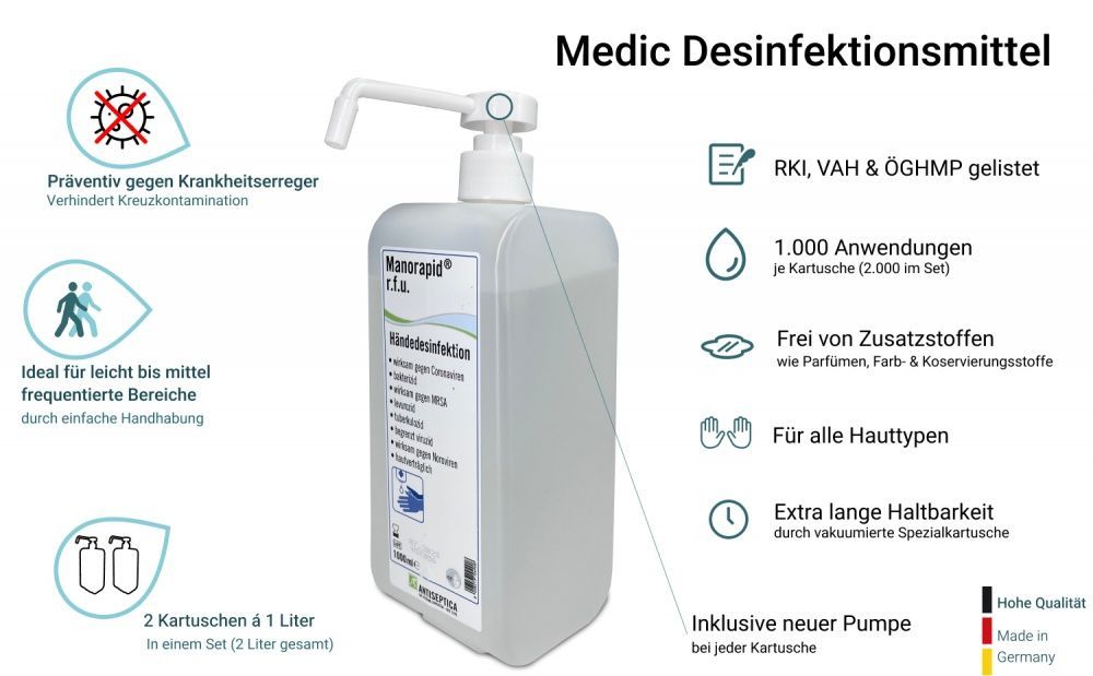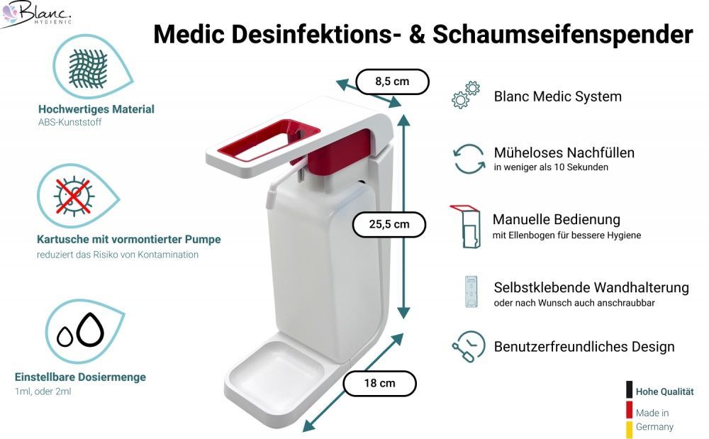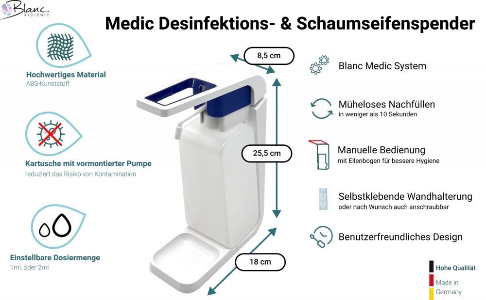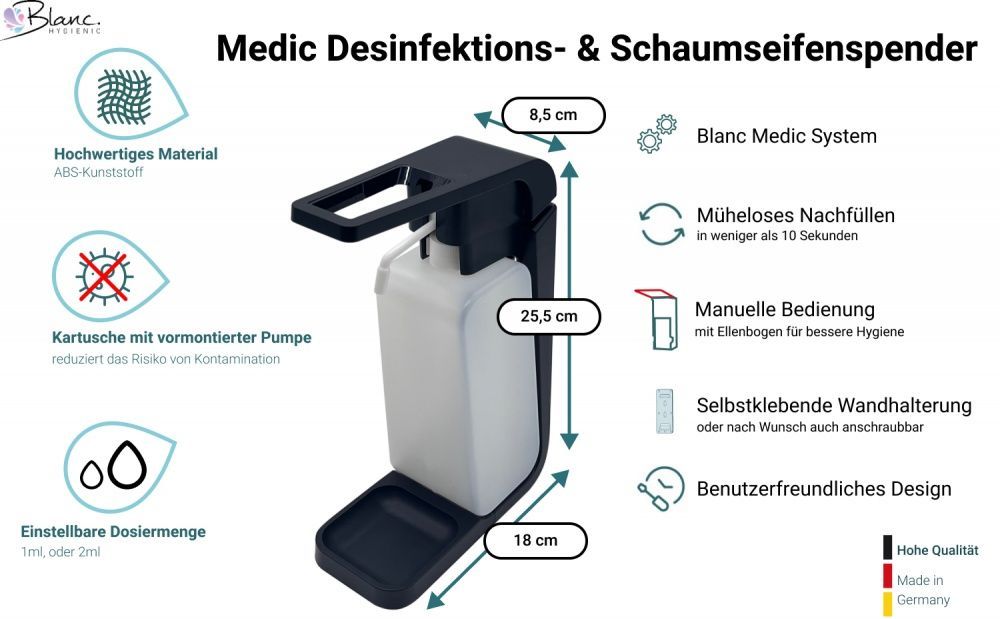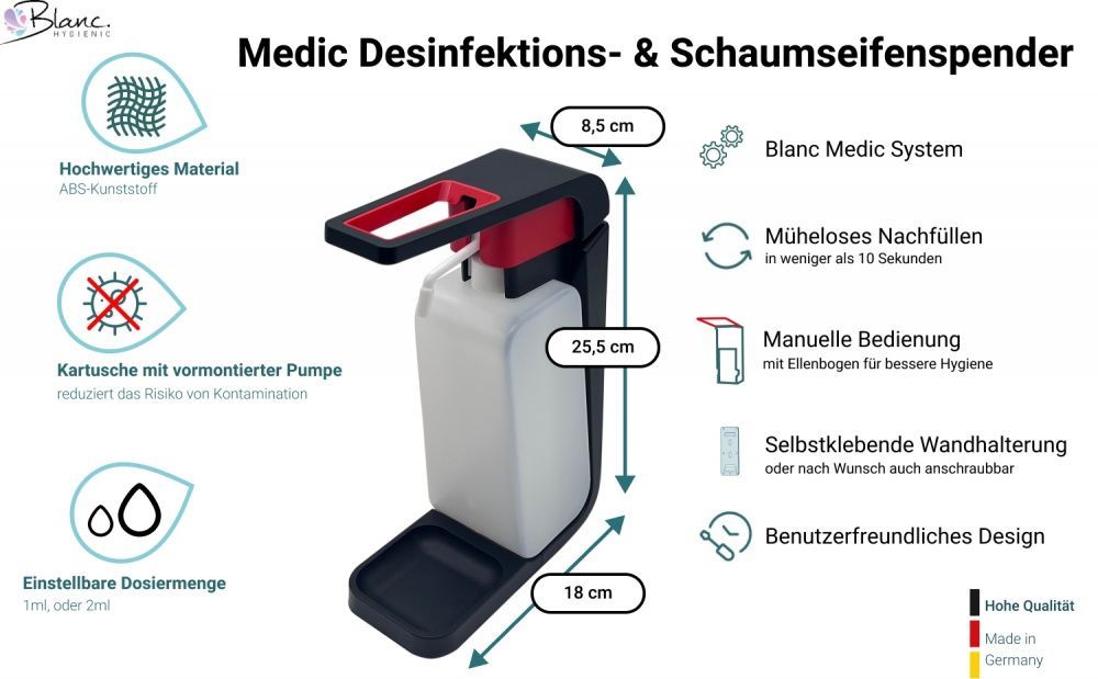 SET: Blanc Hygienic Hebelspender 1.000ml + 2x 1 Liter Haut- und Händedesinfektion mit