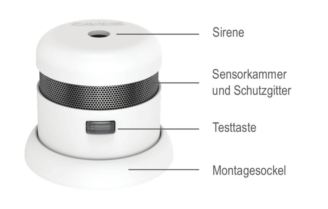 Set CAVIUS 2007 Mini Rauchmelder 40mm + UP Sockel, 10 Jahres Batterie