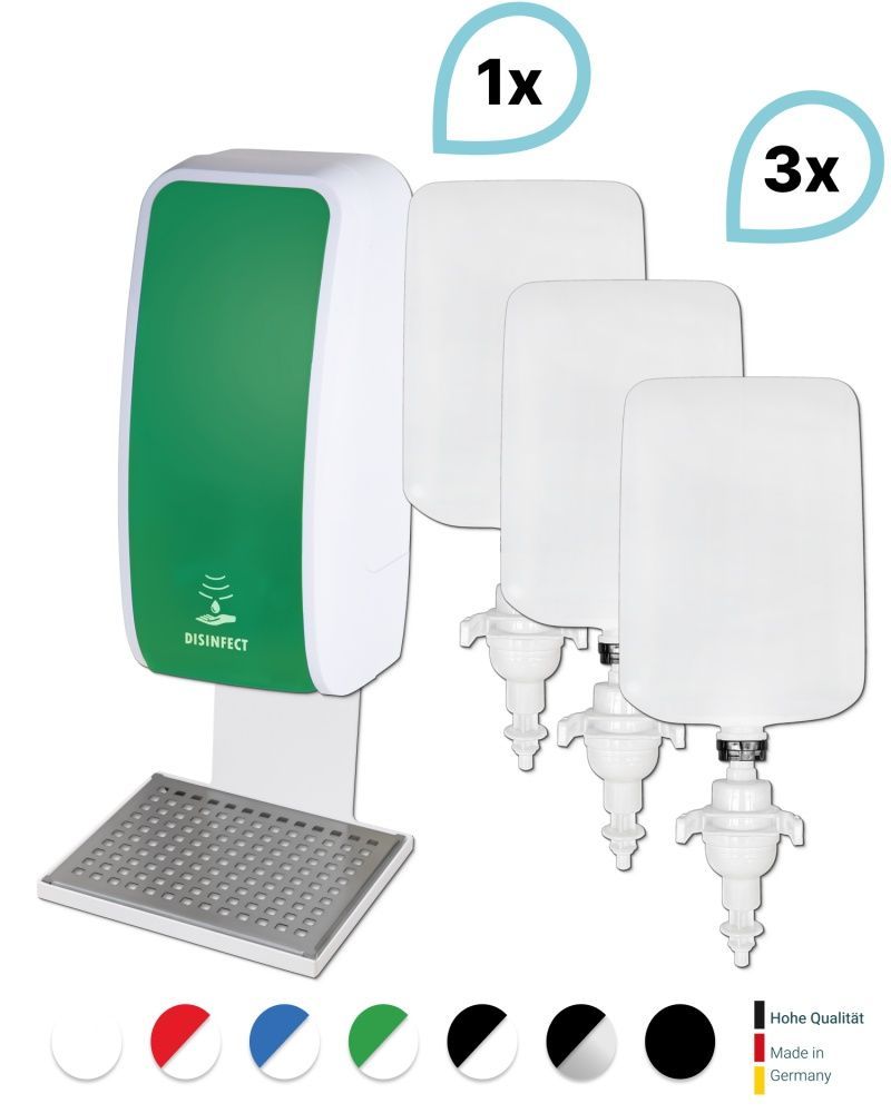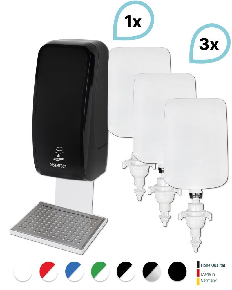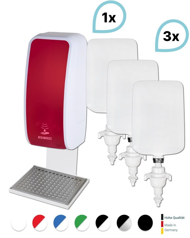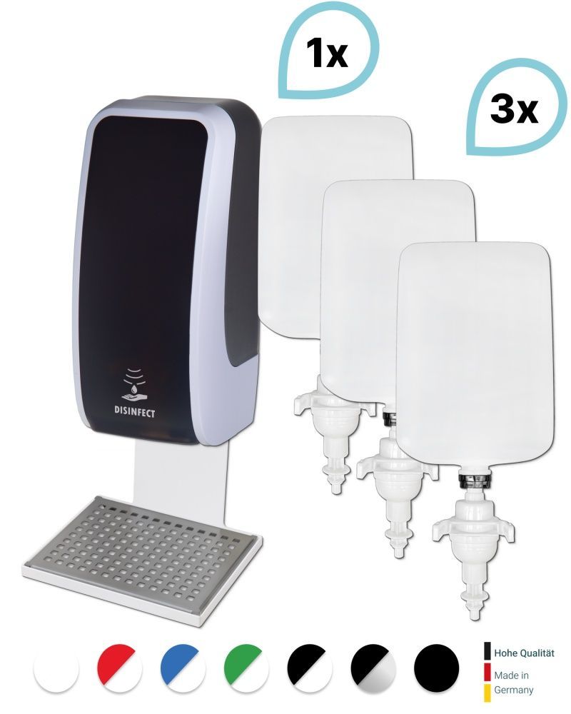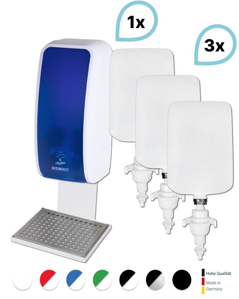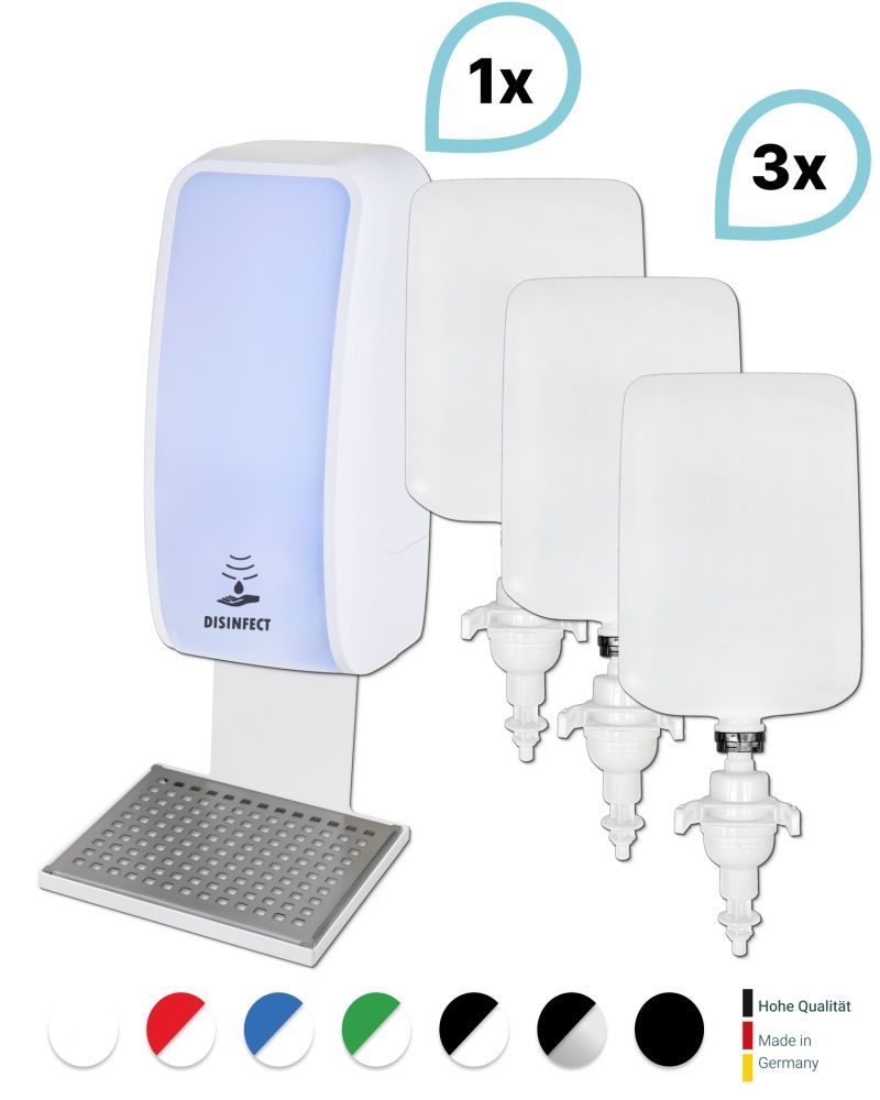 SET: Desinfektionsspender SENSOR Blanc Cosmos versch. Farben + Tischständer weiß + 3x
