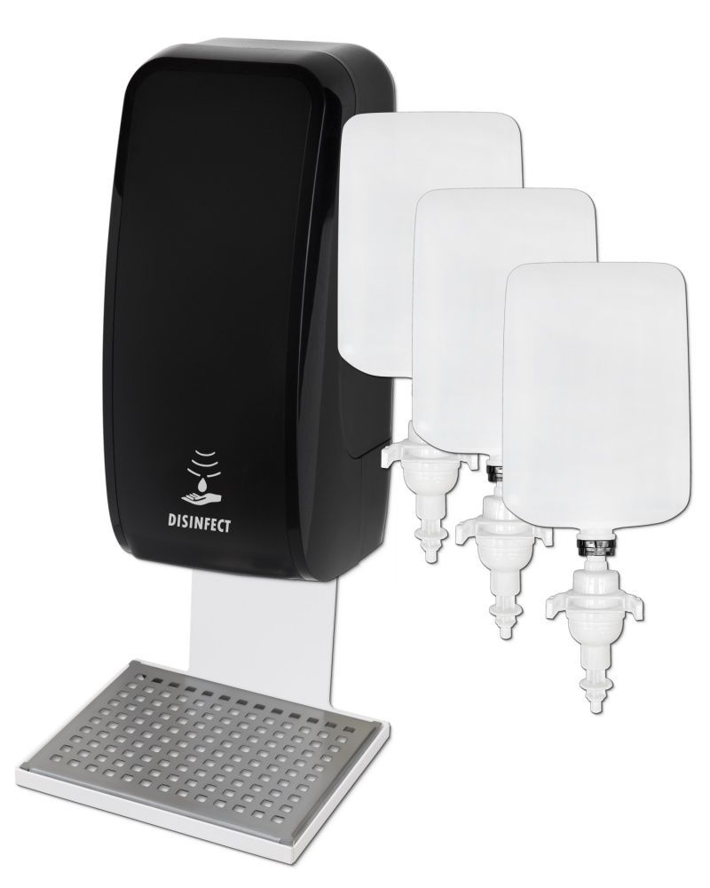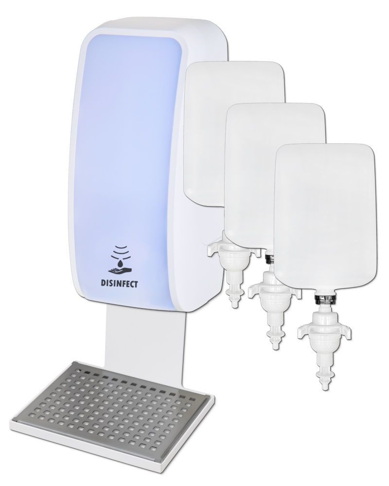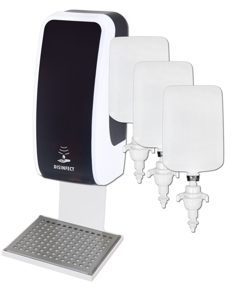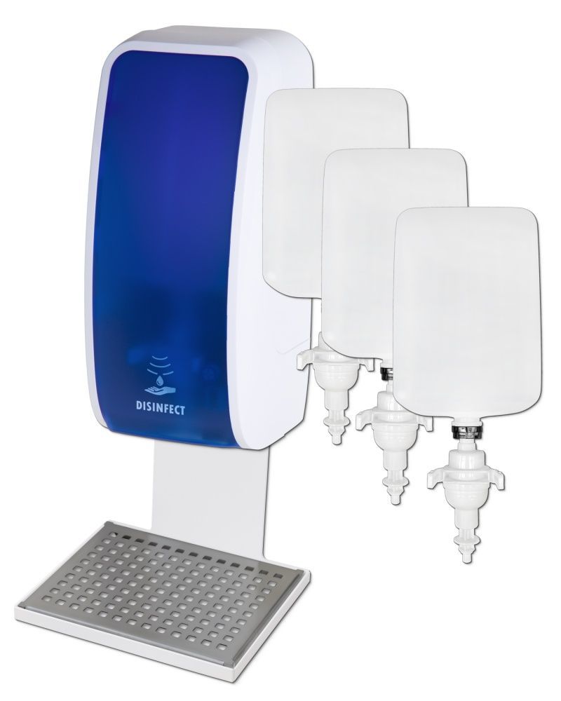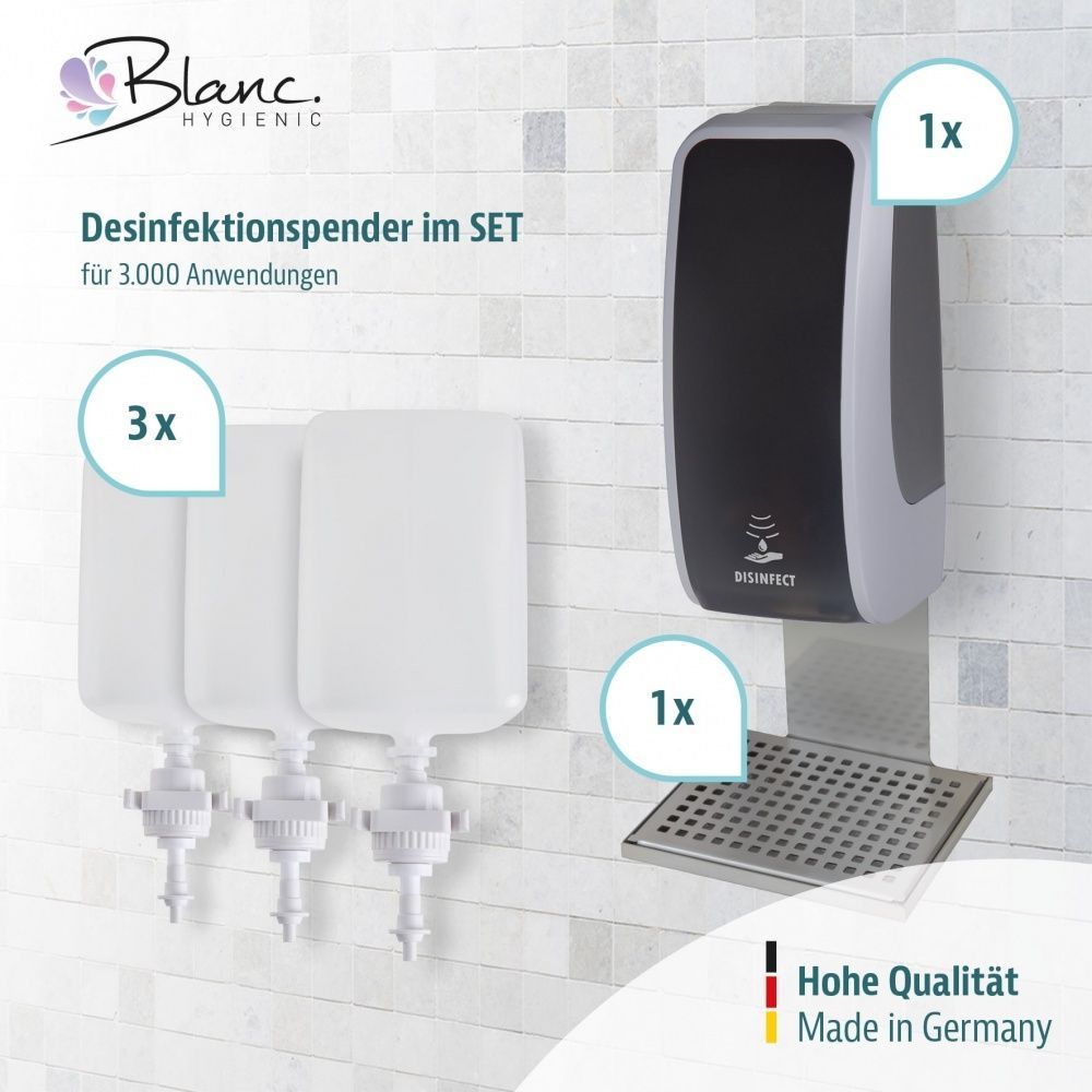 SET: Desinfektionsspender SENSOR Blanc Cosmos versch. Farben + Tischständer weiß + 3x