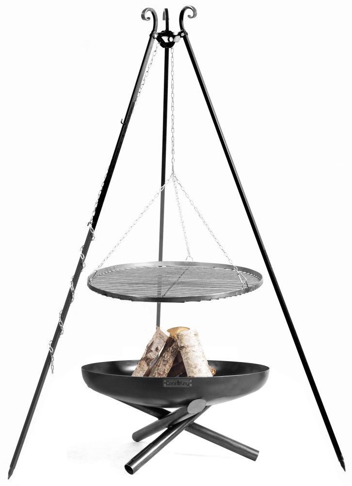 Set: Dreibein 180+ Feuerschale Ø 80+ Edelstahlrost Ø 70- Stahl