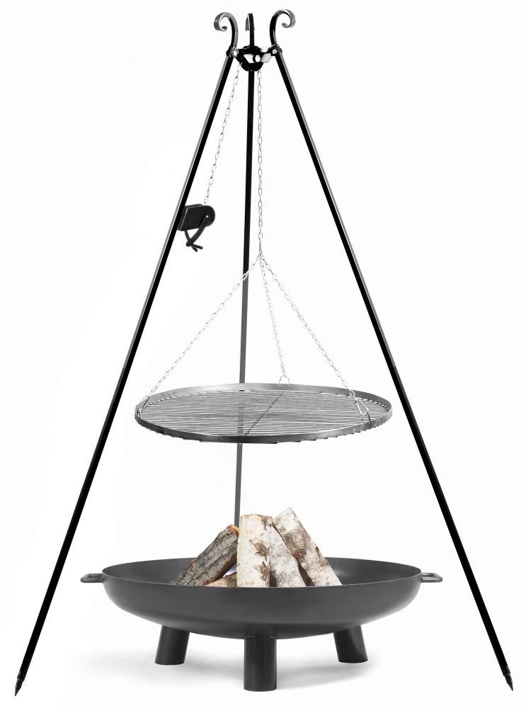 Set: Dreibein 180 mit Kurbel+ Feuerschale Ø 100+ Edelstahlrost Ø 80- Stahl