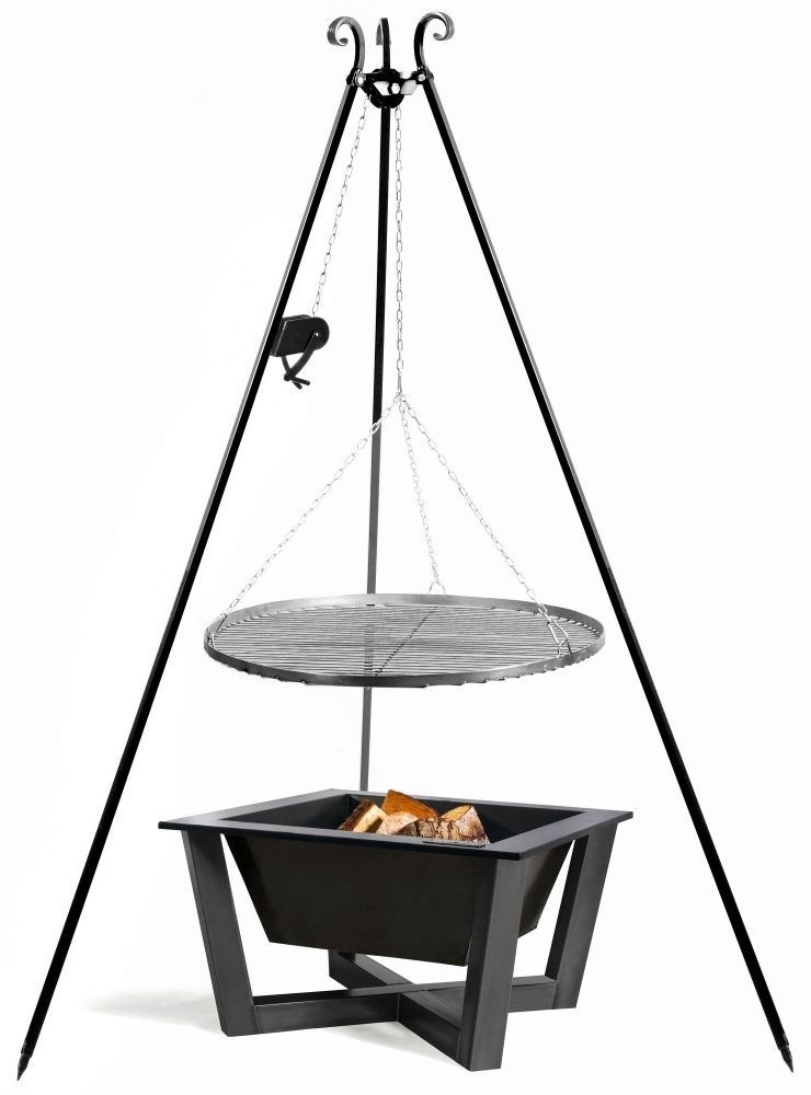 Set: Dreibein mit Kurbel 180+ Feuerschale 70x70+ Edelstahlrost Ø 50- Stahl