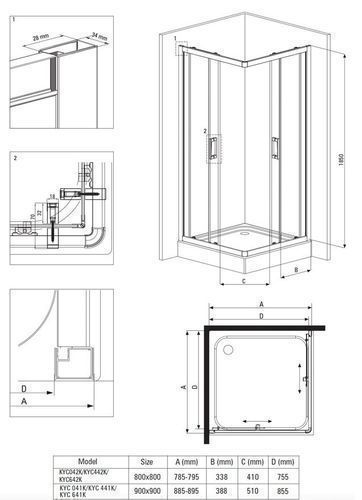 SET: Duschwanne Oskar & Duschkabine Quadratisch Funkia 80x80 185cm Transparentes Glas
