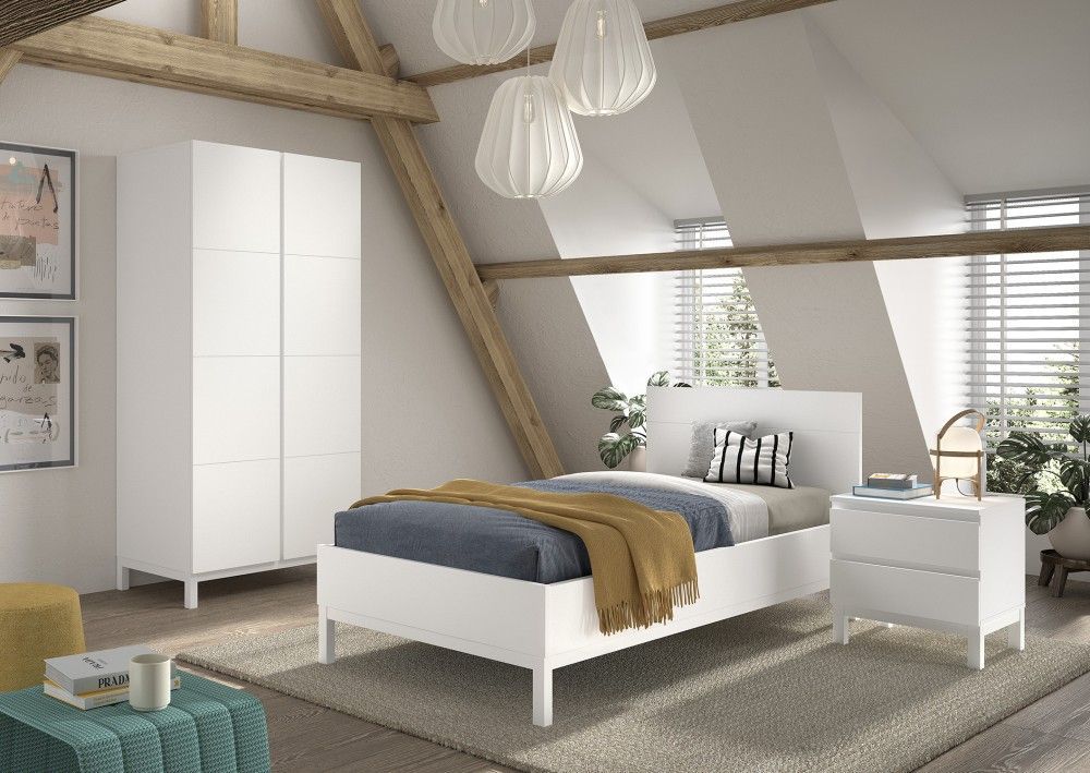 VIPACK Set Einzelbett 90x200 Nachtkommode Schrank 2T Jugendzimmer Kinderzimmer Weiß