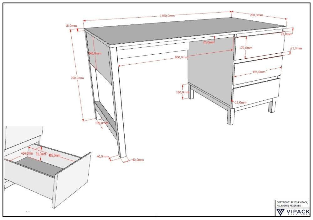 VIPACK Set Einzelbett 90x200 Nachtkommode Schrank 2T Schreibtisch Jugendzimmer Weiß