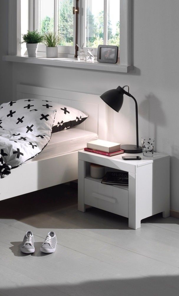 VIPACK Set Einzelbett 90x200 Nachtkonsole Jugendbett Kindermöbel Lattenrost Weiß Bett