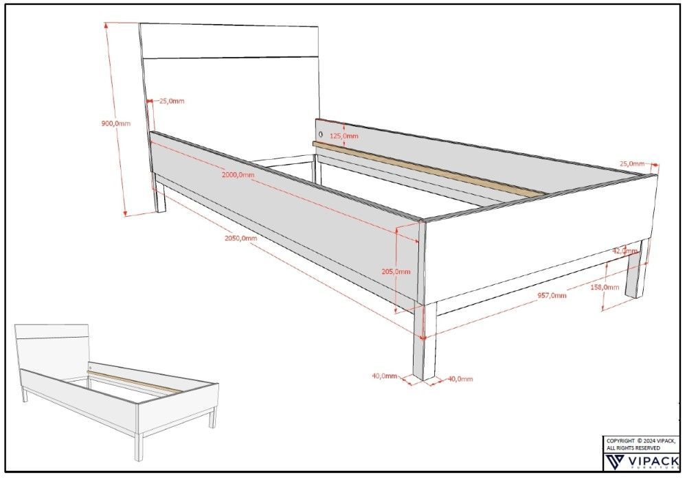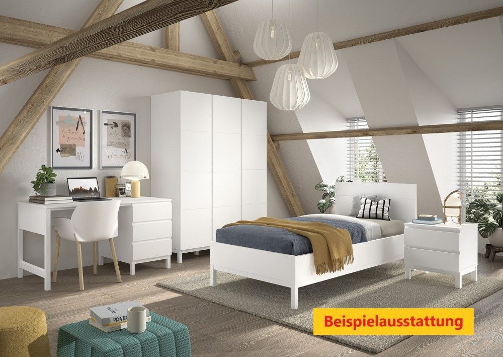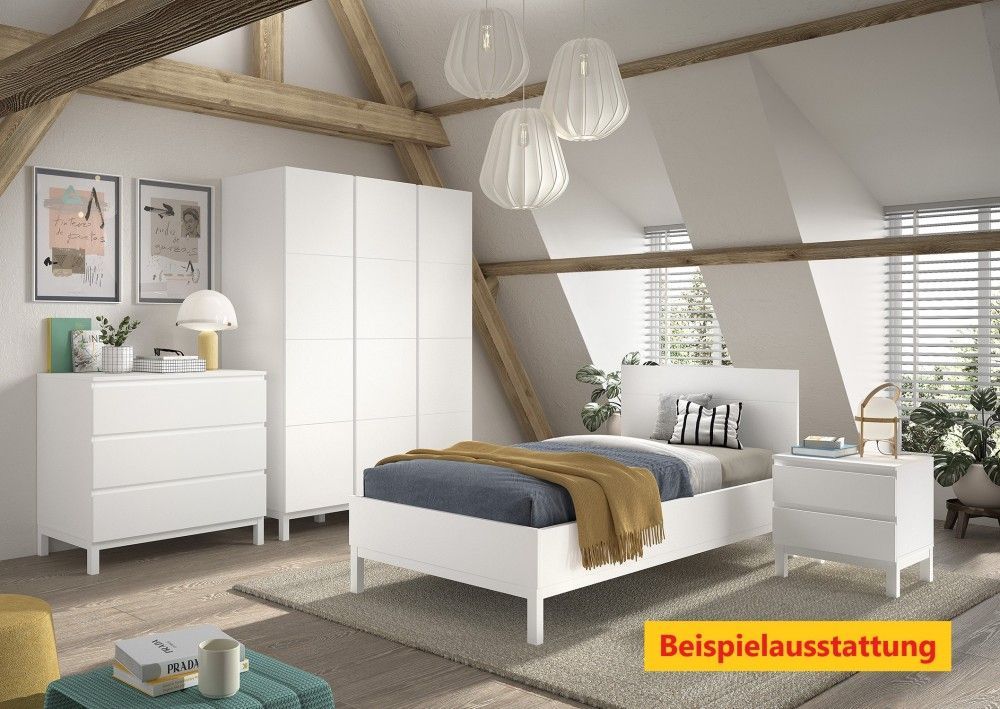 VIPACK Set Einzelbett Jugendbett 90x200 und Nachtkommode Jugendzimmer Kinderzimmer Weiß