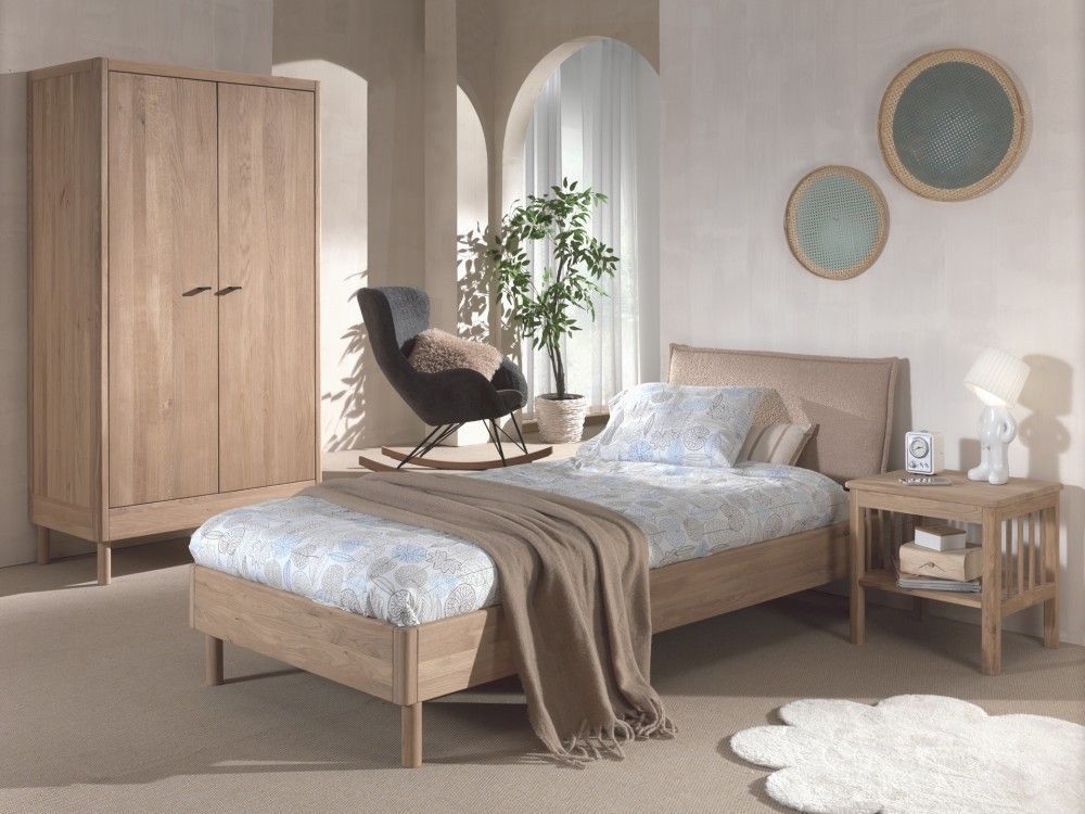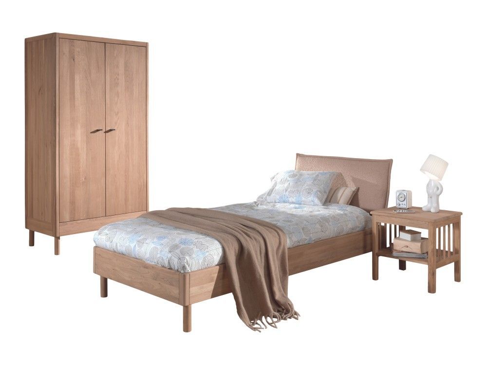 VIPACK Set Einzelbett Schrank 2T Nachtkonsole Lattenrost Eiche massiv natur geölt