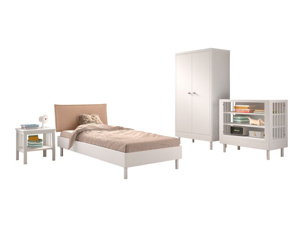 VIPACK Set Einzelbett Schrank Nachtkonsole Beistellregal Lattenrost Buche massiv Weiß