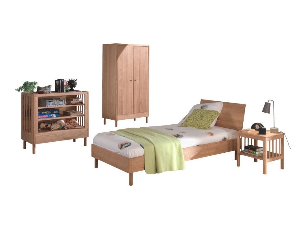 VIPACK Set Futonbett Schrank 2T Nachtkonsole Beistellregal Lattenrost Eiche massiv