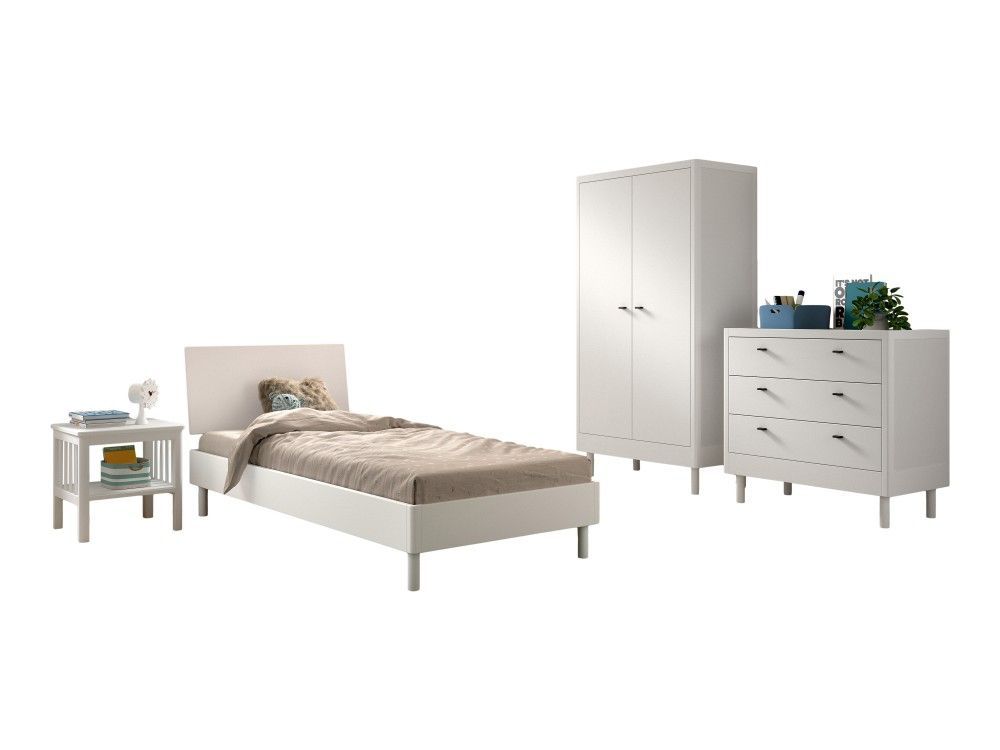 VIPACK Set Futonbett Schrank 2T Nachtkonsole Kommode Lattenrost Buche massiv Weiß