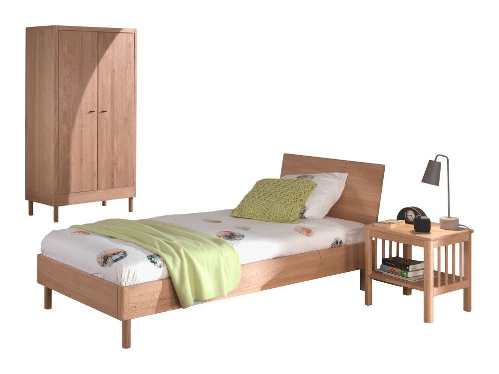 VIPACK Set Futonbett Schrank 2T Nachtkonsole Lattenrost Eiche massiv natur geölt