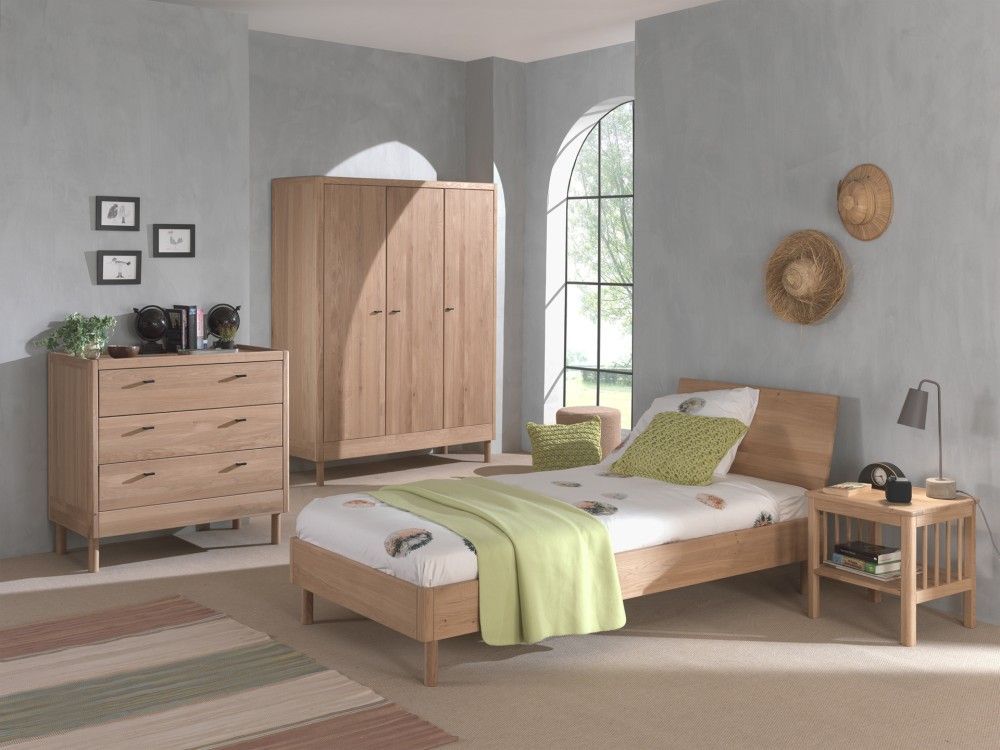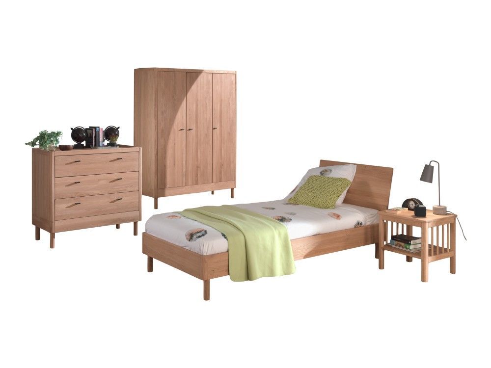 VIPACK Set Futonbett Schrank 3T Nachtkonsole Kommode Lattenrost Eiche massiv geölt