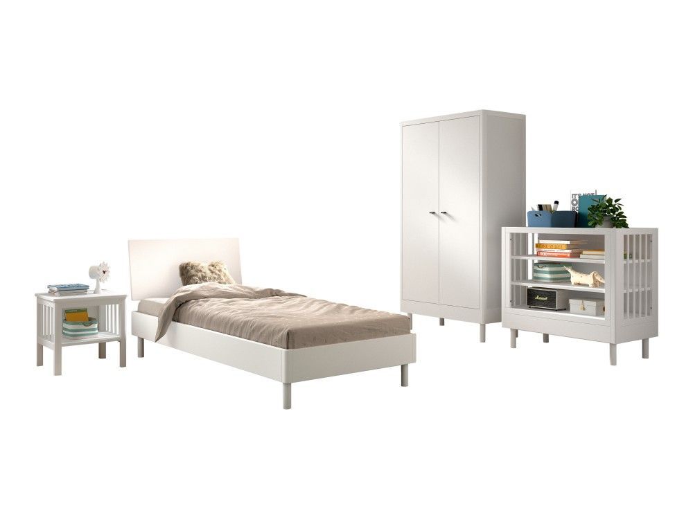 VIPACK Set Futonbett Schrank Nachtkonsole Beistellregal Lattenrost Buche massiv Weiß