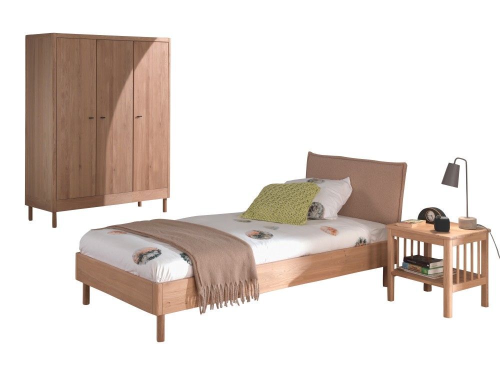 VIPACK Set Futonbett Stoff Schrank 3T Nachtkonsole Lattenrost Eiche massiv geölt