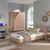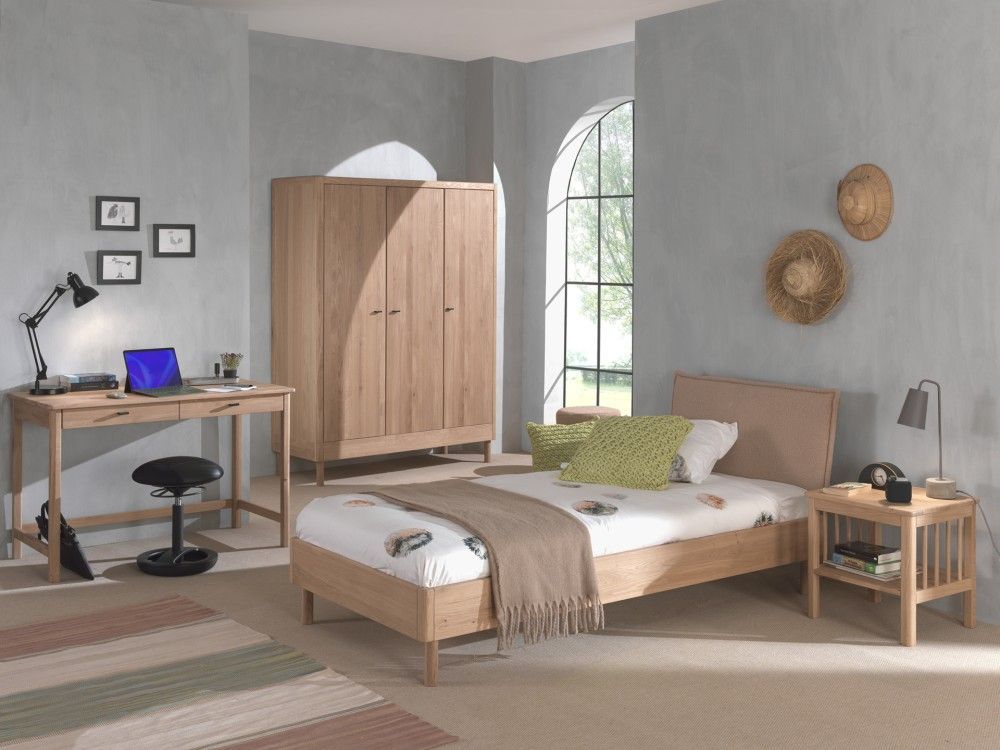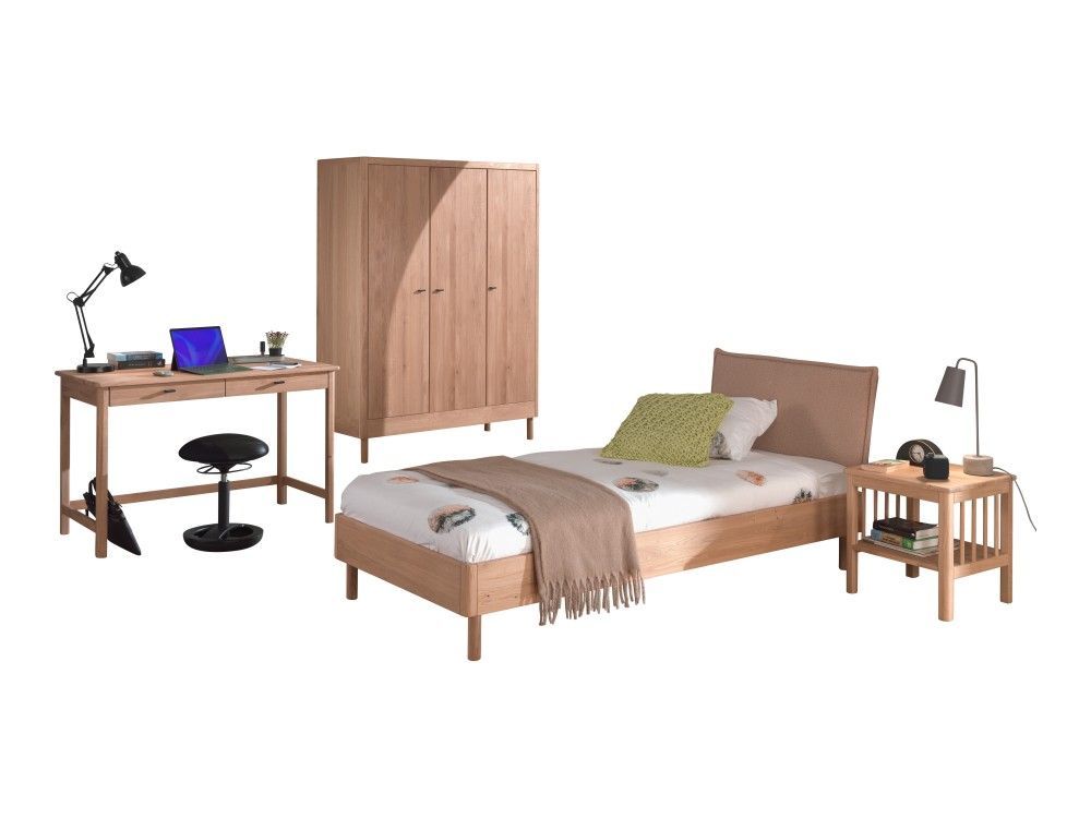 VIPACK Set Futonbett Stoff Schrank 3T Nachtkonsole Schreibtisch Lattenrost Eiche massiv