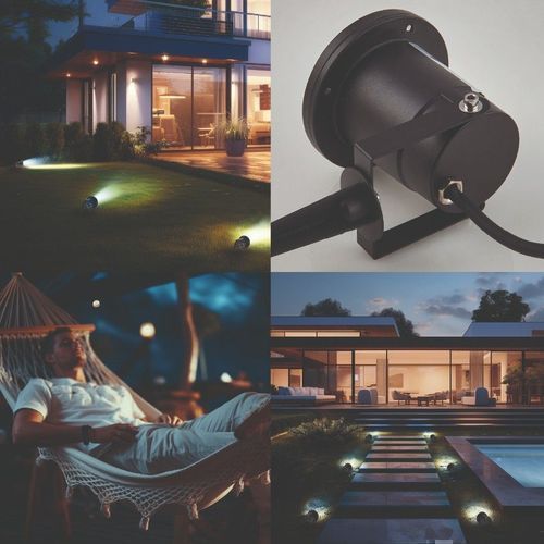 Set Gartenleuchten PORTO Gartenstrahler Außenlampe + GU10 3W Premium-Kaltlichtbirne
