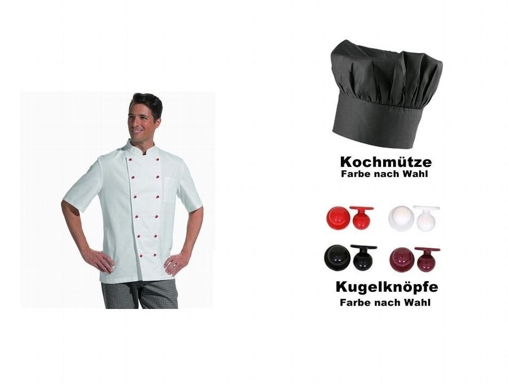 SET Giacca da chef+Bottoni+Cappello cuoco Tg.42-64 Donna 36-58 La descrizione di questo articolo è stata tradotta automaticamente. Se hai dubbi o domande, ti invitiamo a contattarci. LEIBER Kochjacke halbarm in bianco incl. I pulsanti + cappello da cuoco Descrizione del prodotto Formati disponibili:
