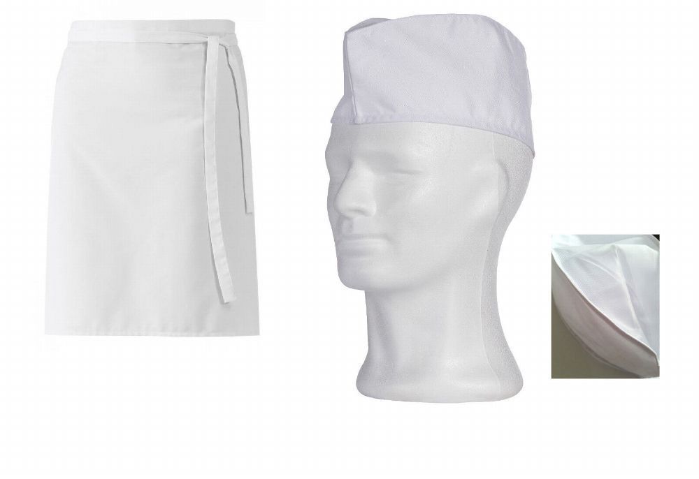 Set Grembiule 45x80cm bianco + Berretto panettiere Navetta bistro cameriere