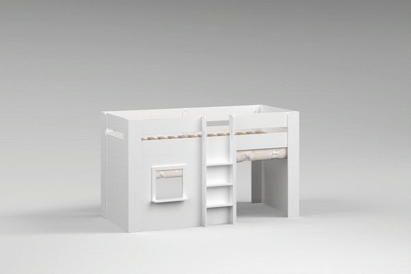 VIPACK Set halbhohes Spielbett 90x200 Lattenrost Vorhang Hausbett Hüttenbett Kinderbett