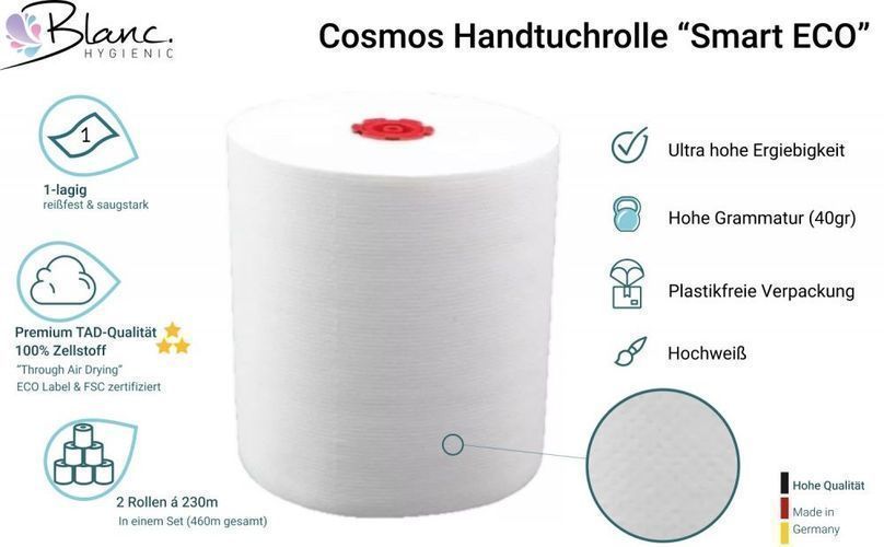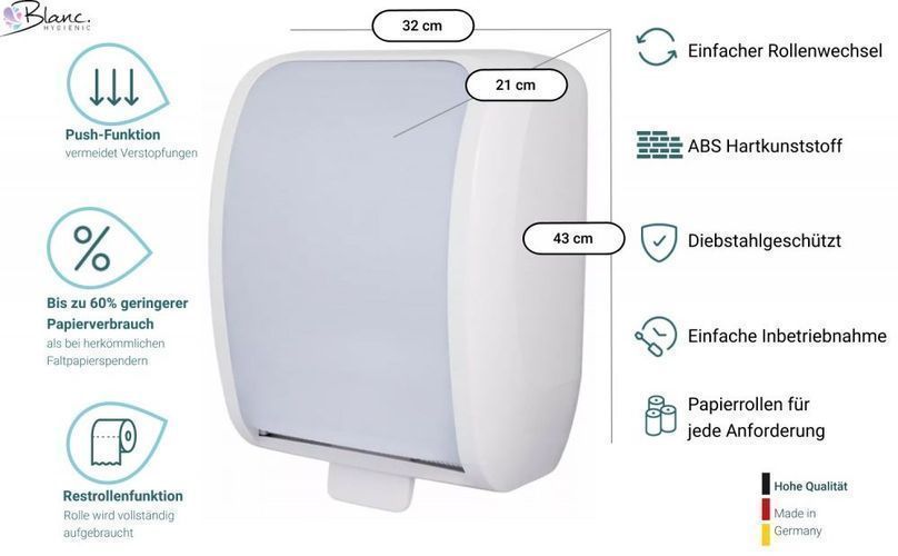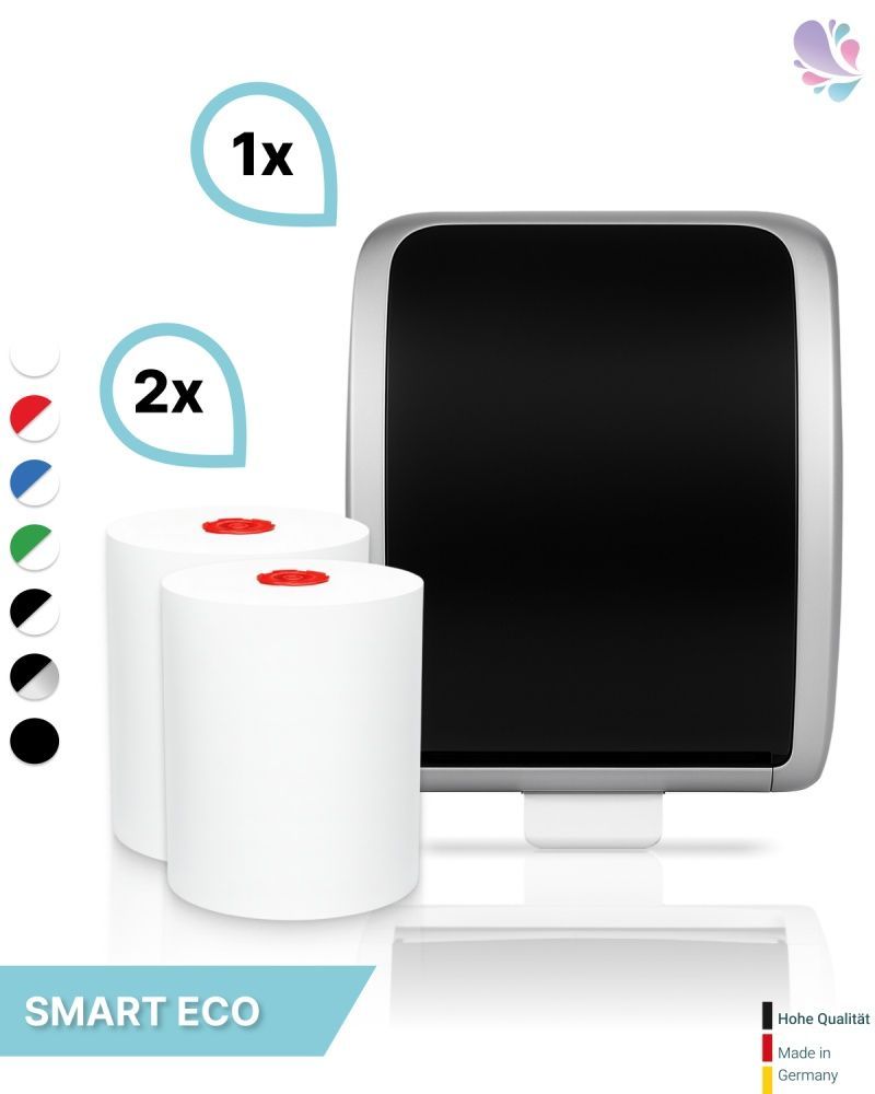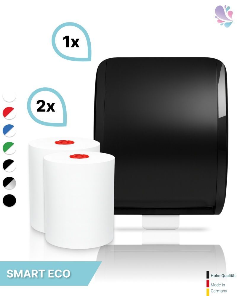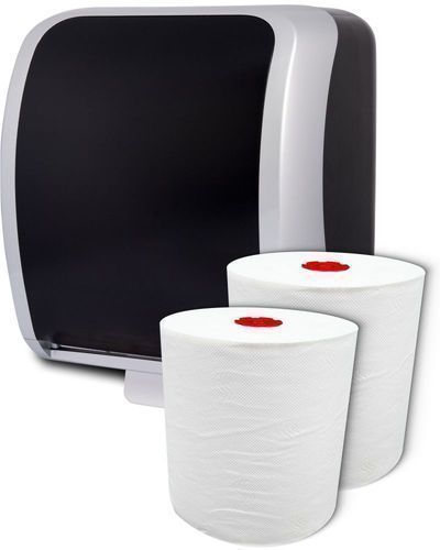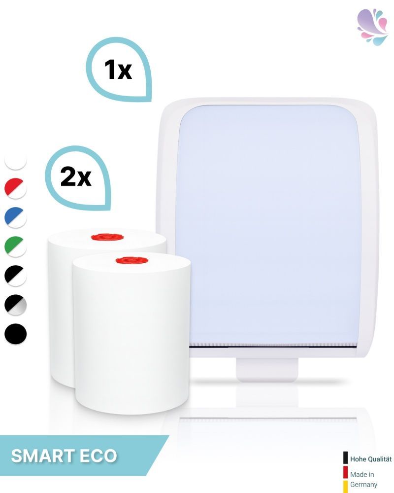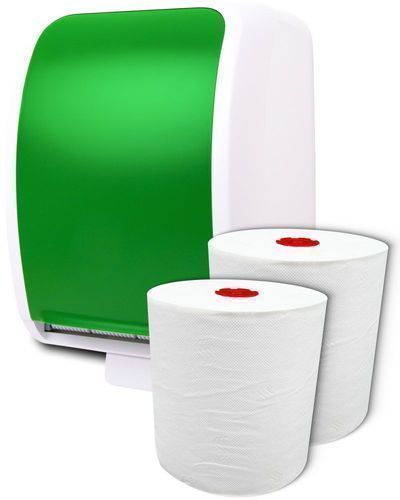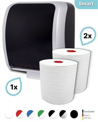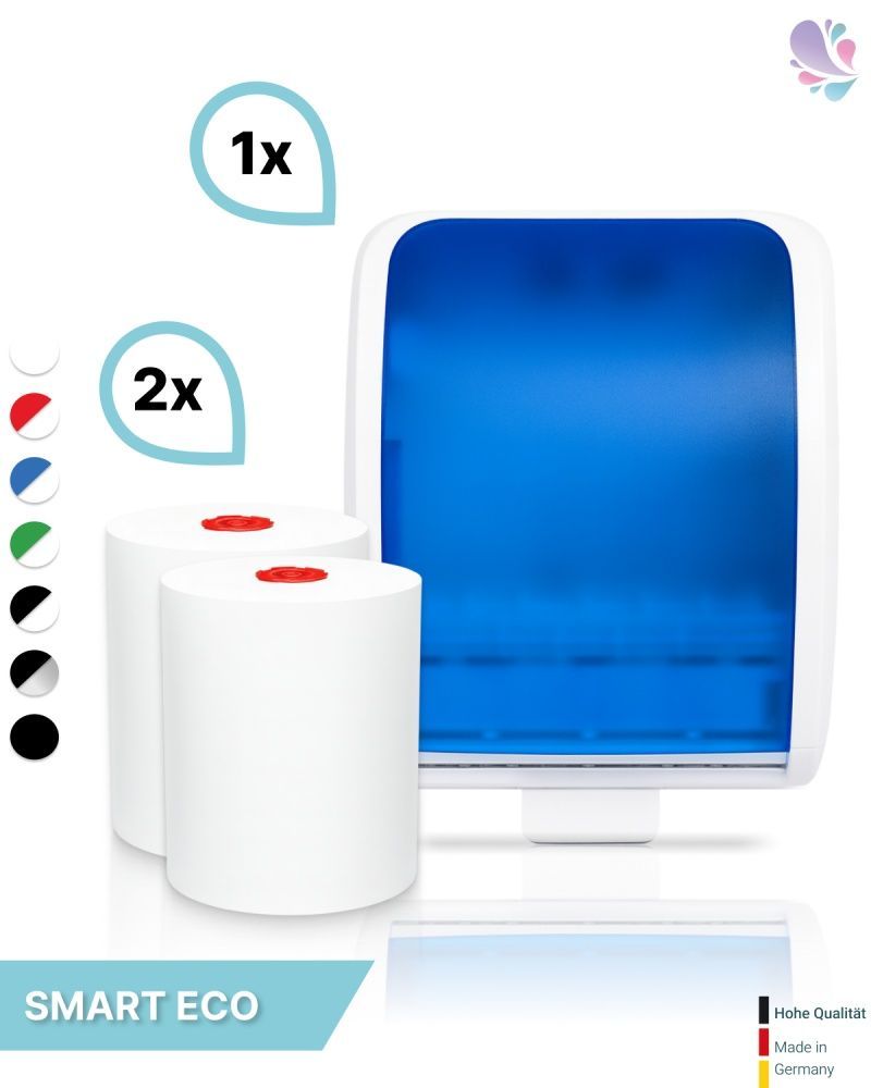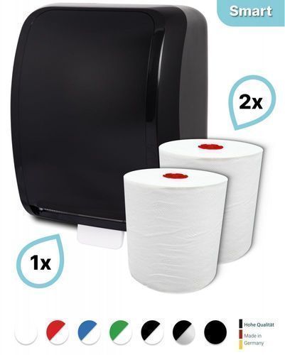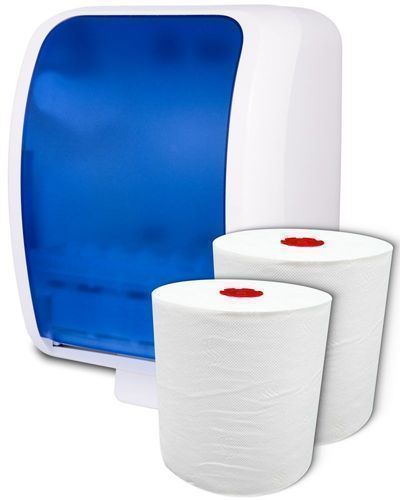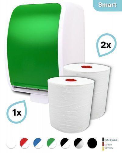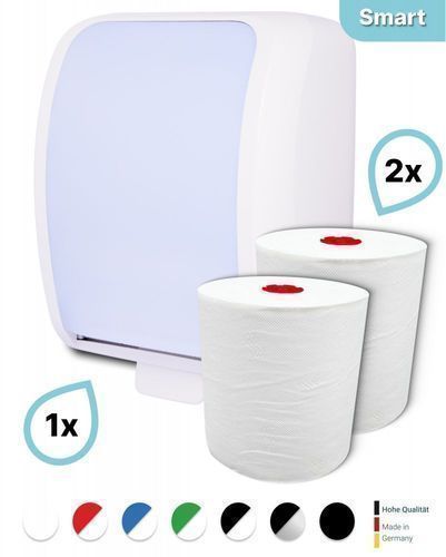 SET: Handtuchrollenspender Autocut, Blanc Cosmos verschied. Farben + 2 Handtuchrollen