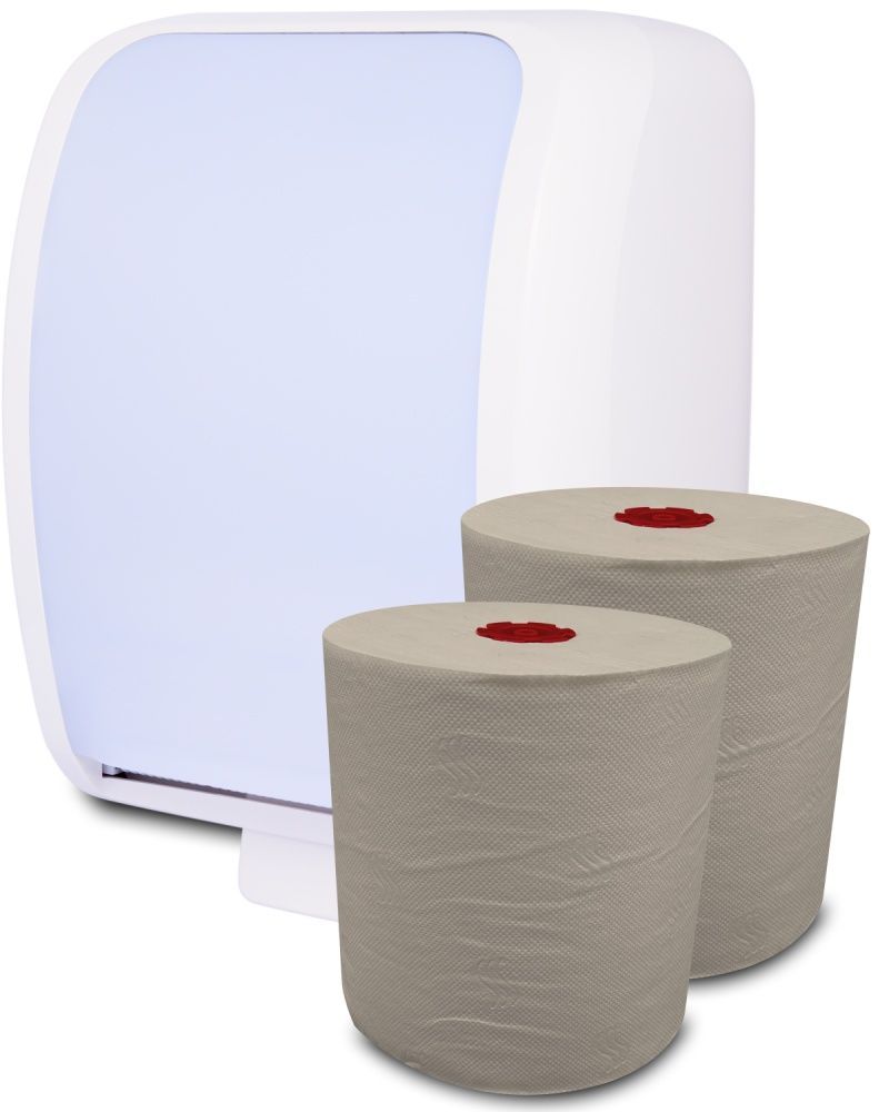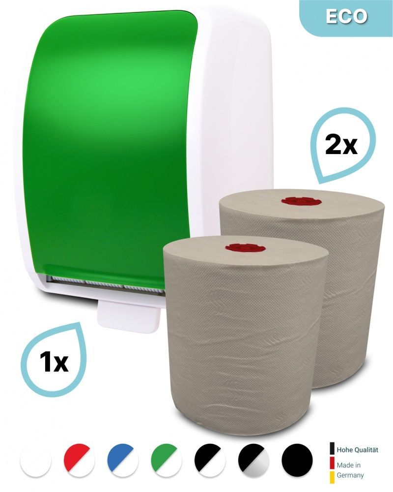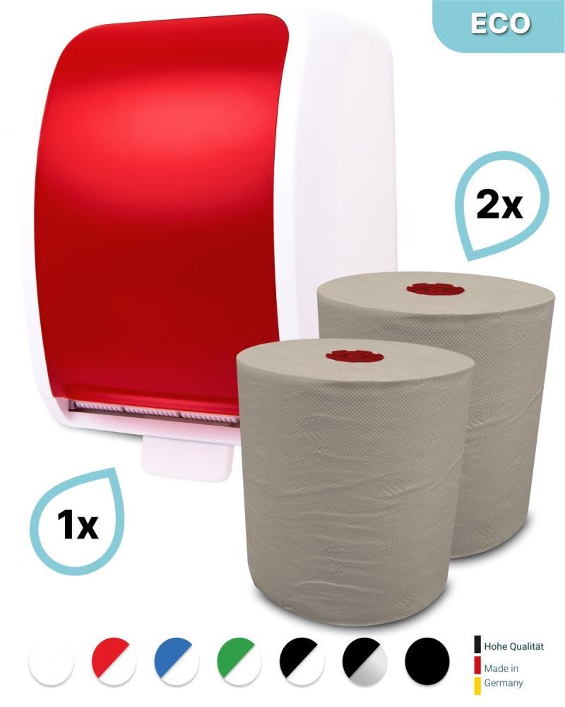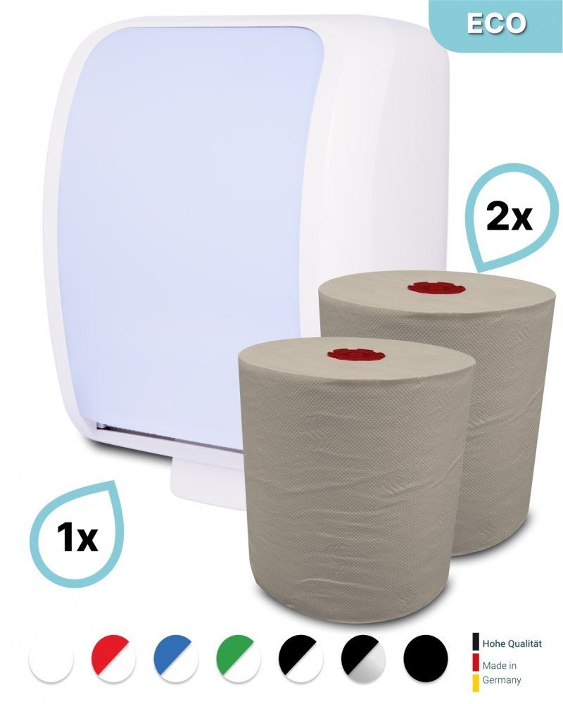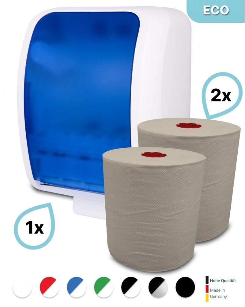 SET: Handtuchrollenspender Autocut, Blanc Cosmos verschied. Farben + 2 Handtuchrollen