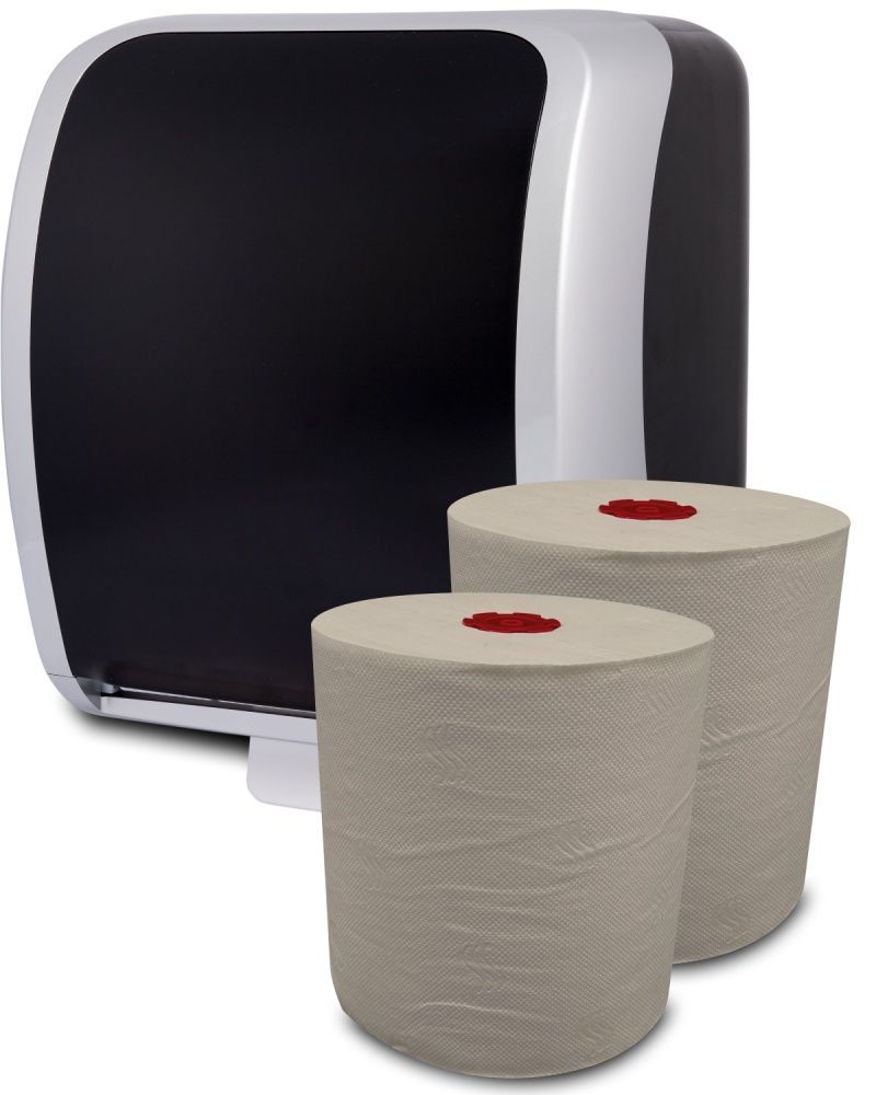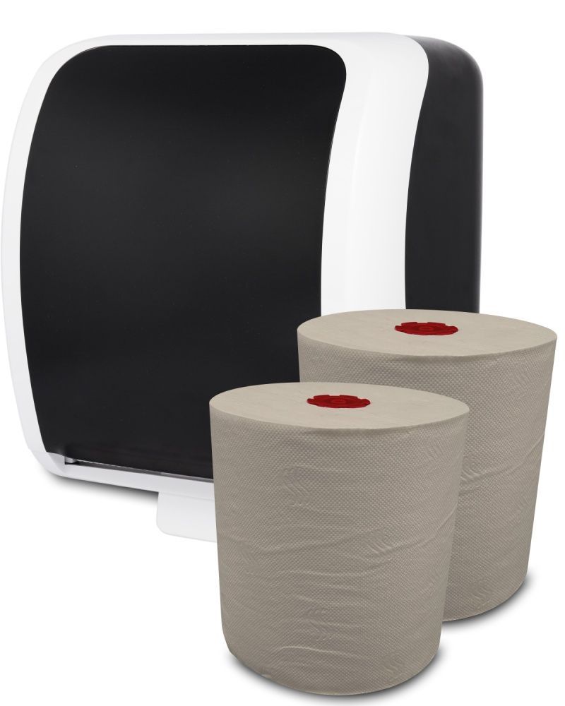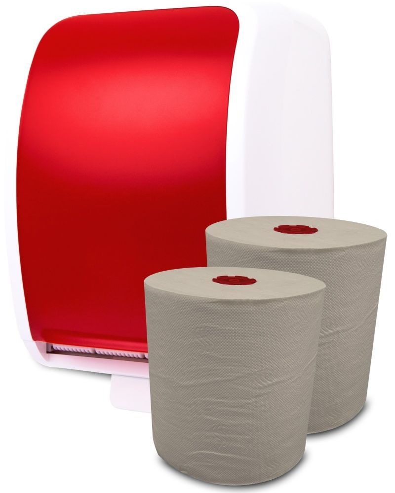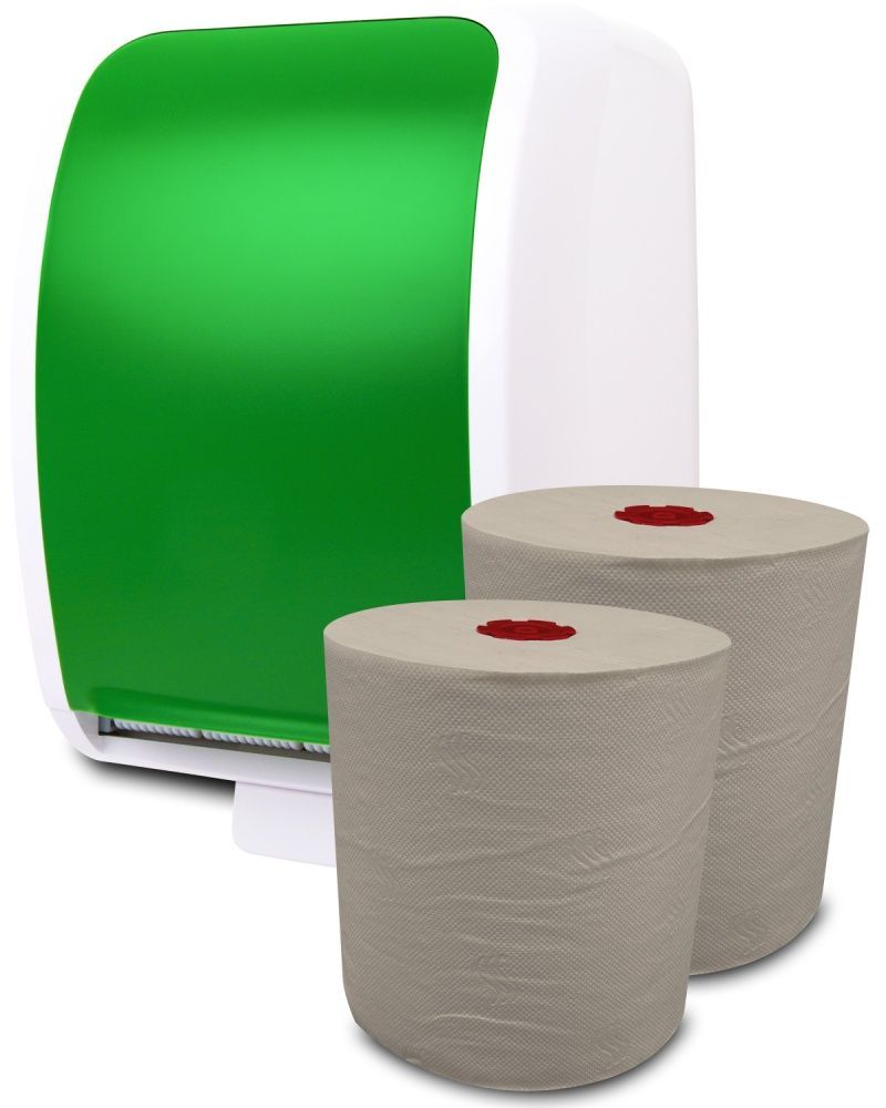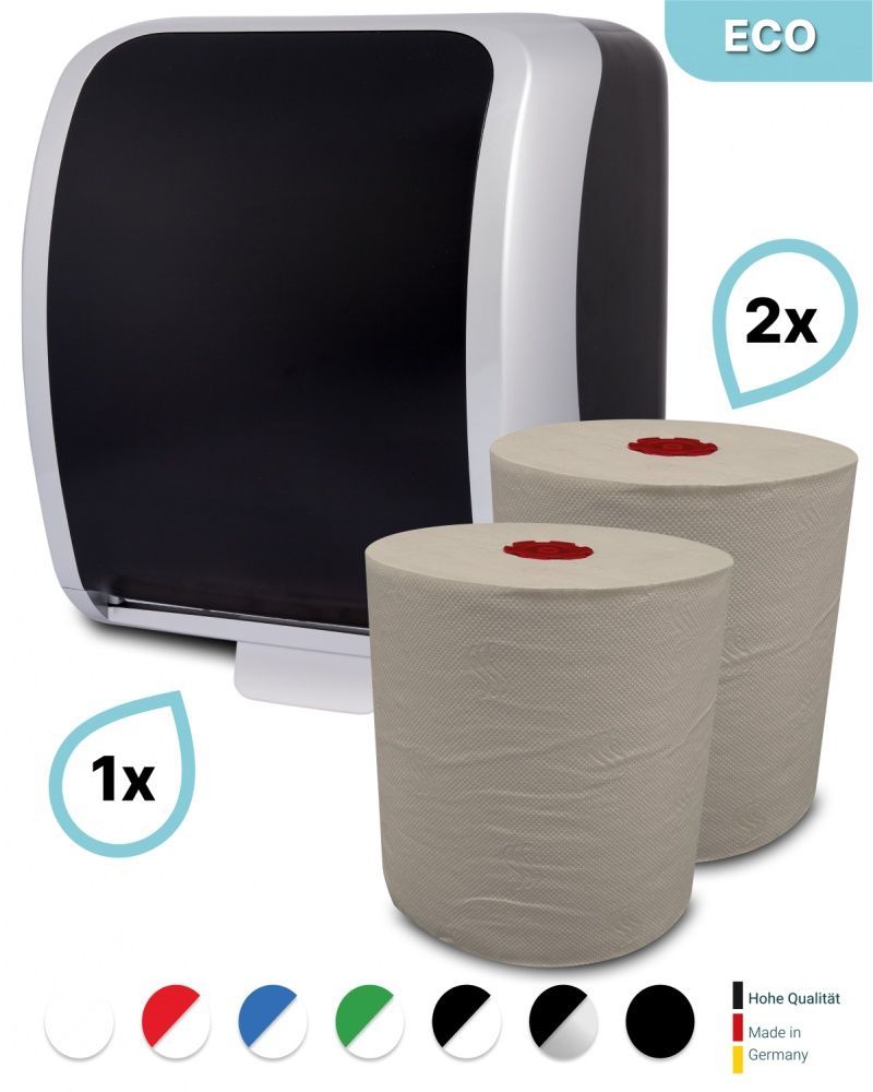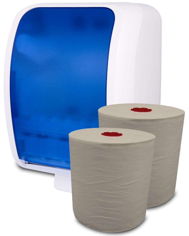 SET: Handtuchrollenspender Autocut, Blanc Cosmos verschied. Farben + 2 Handtuchrollen
