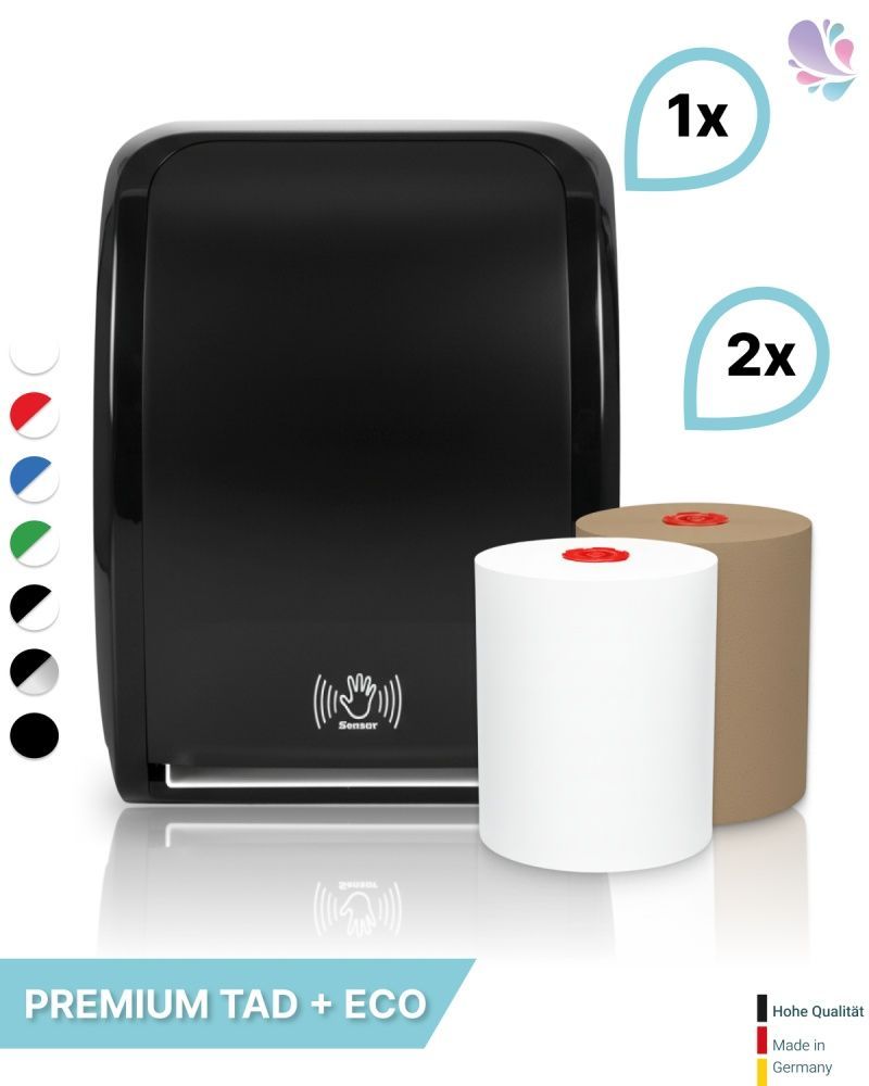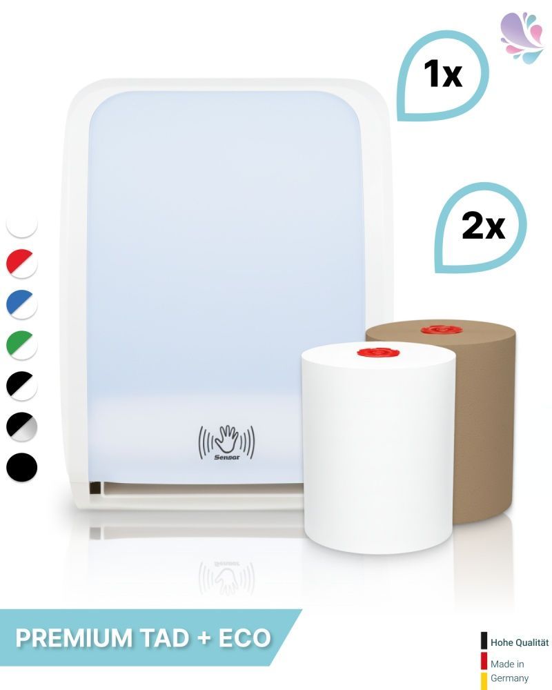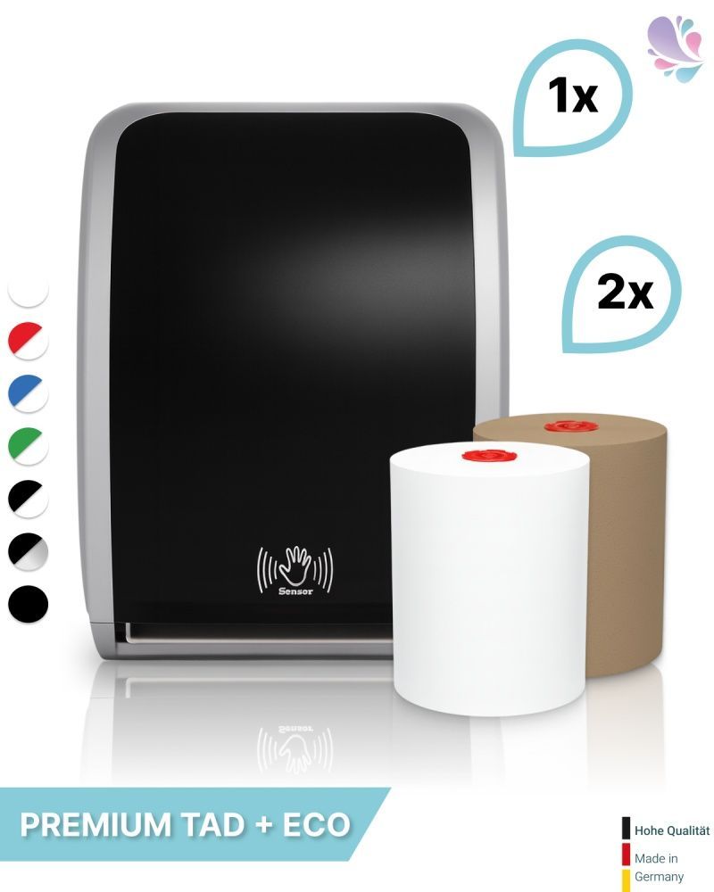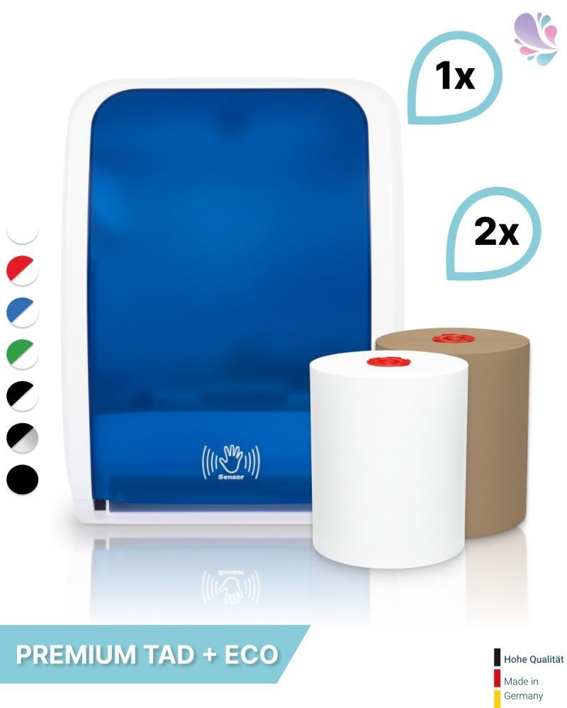 SET: Handtuchrollenspender SENSOR, berührungslos, Blanc Cosmos versch. Farben+ 1Rolle