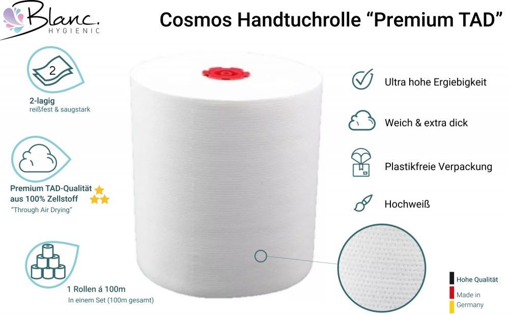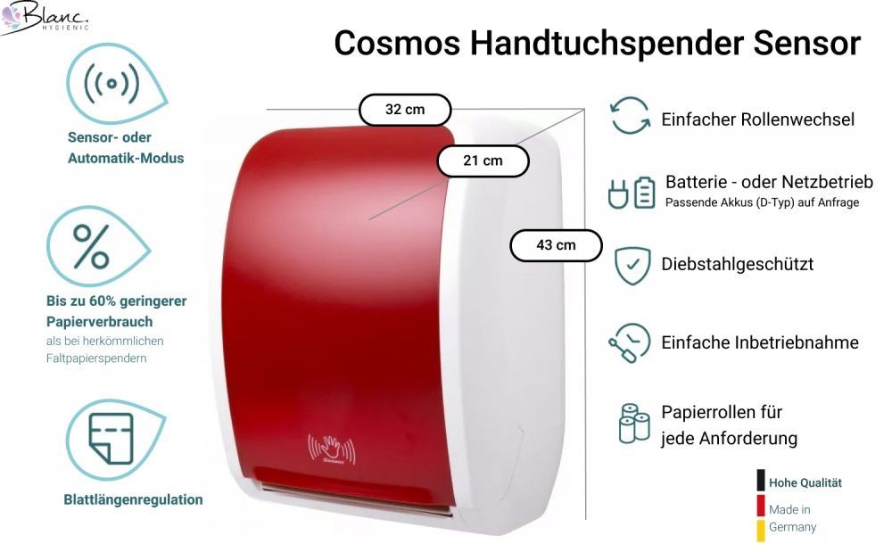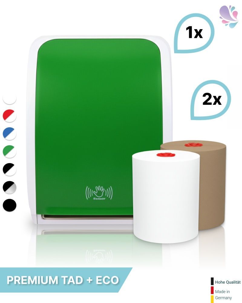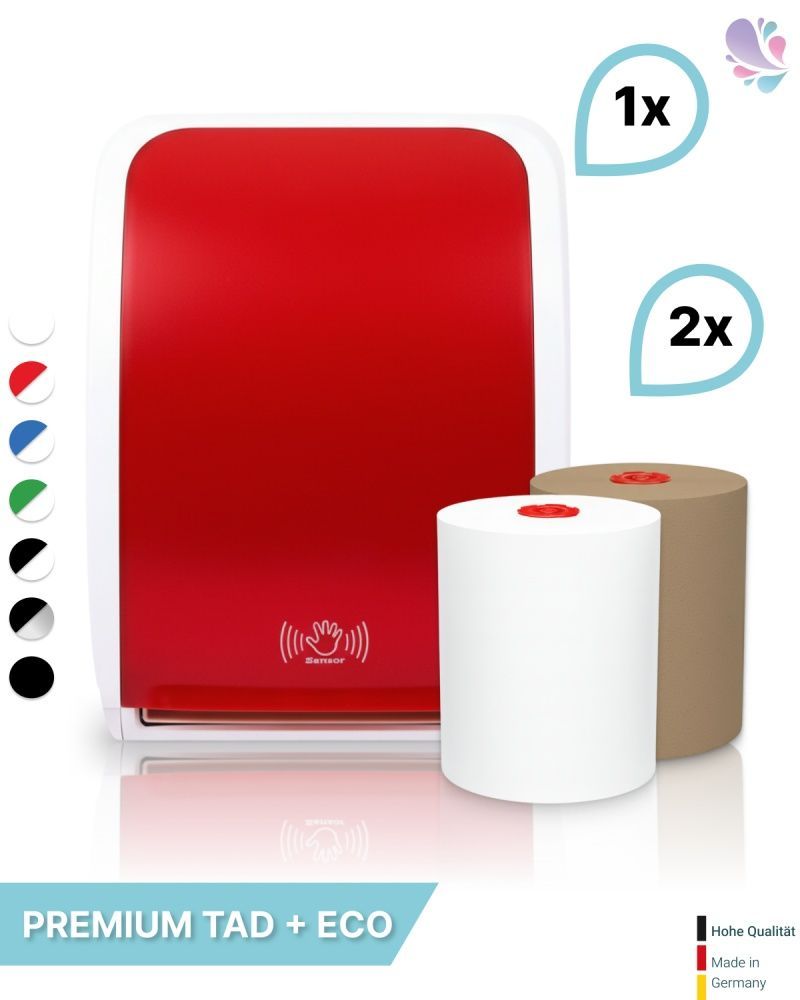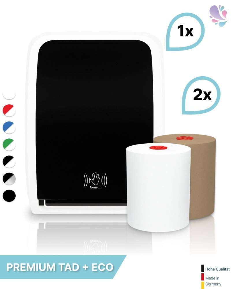 SET: Handtuchrollenspender SENSOR, berührungslos, Blanc Cosmos versch. Farben+ 1Rolle