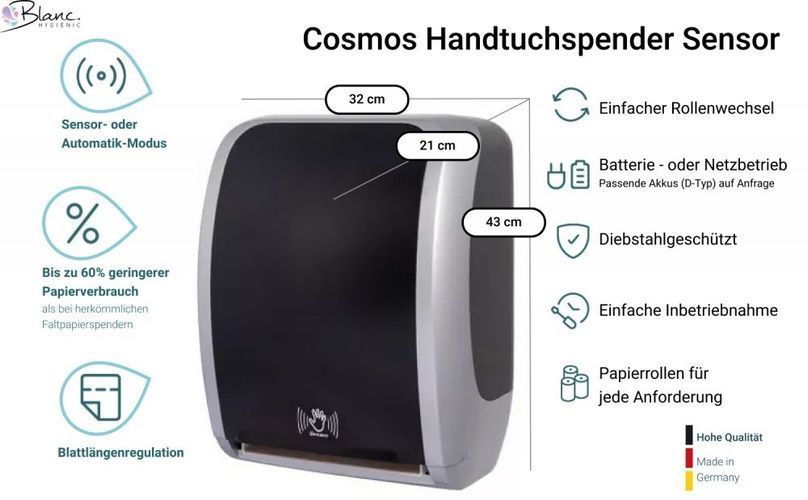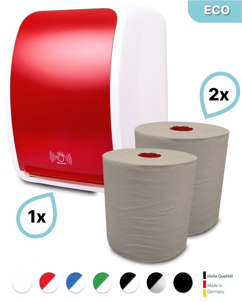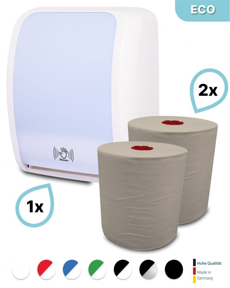 SET: Handtuchrollenspender SENSOR, berührungslos, Blanc Cosmos verschied. Farben + 2