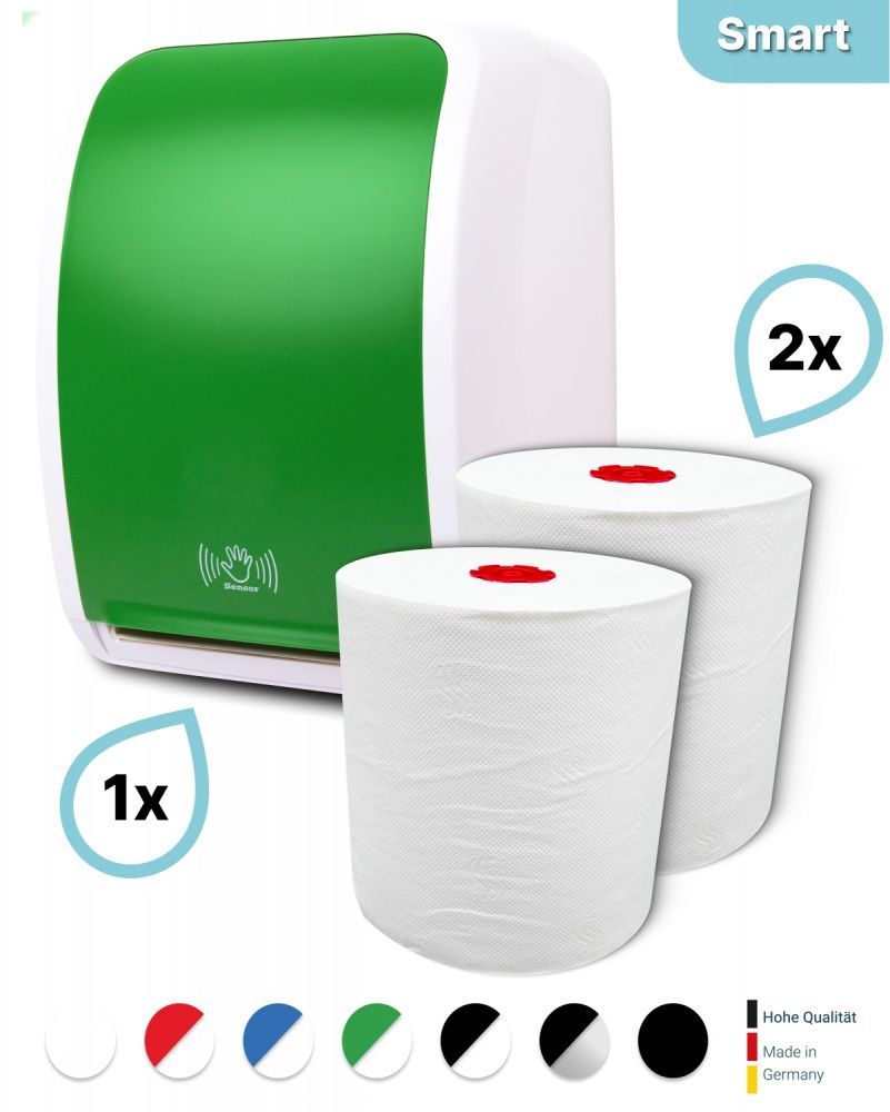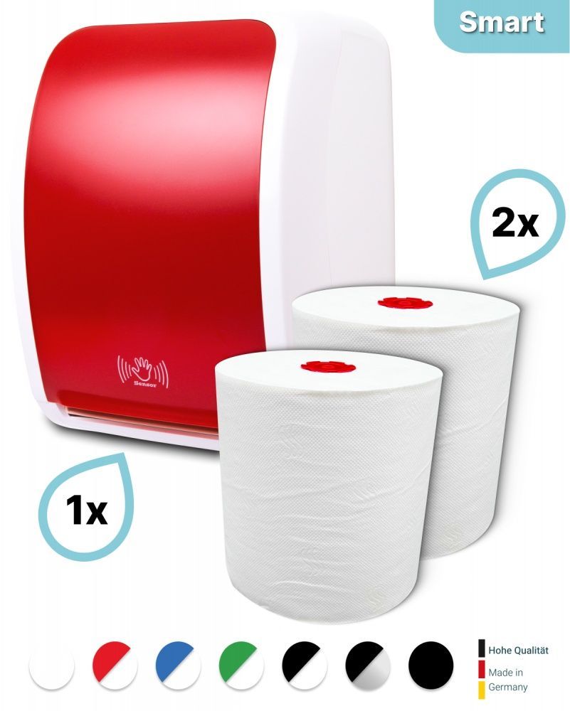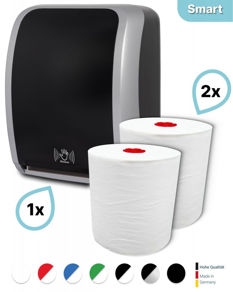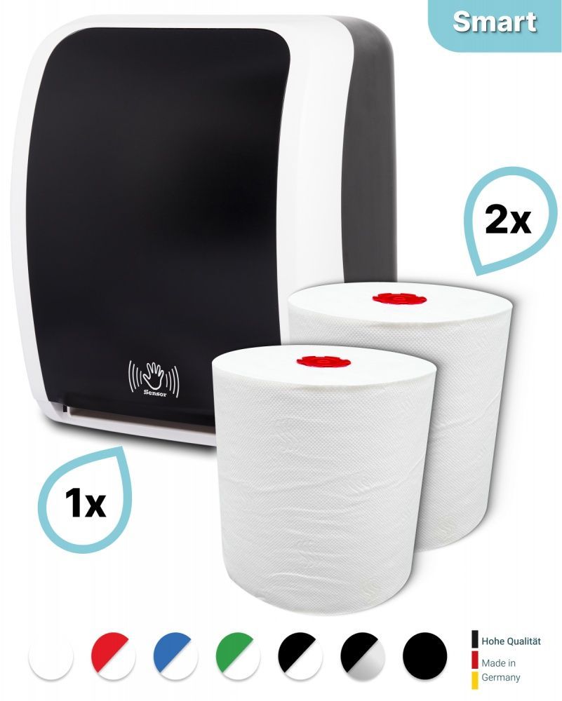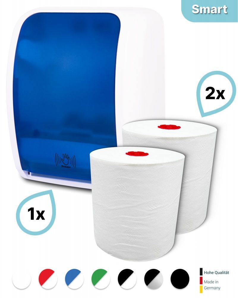 SET: Handtuchrollenspender SENSOR, berührungslos, Blanc Cosmos verschied. Farben + 2